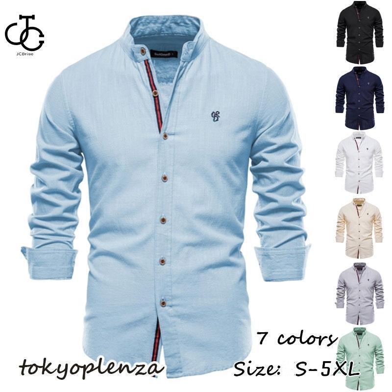 シャツ メンズ 長袖シャツ 春秋 開襟 メンズファッション 続々入荷中 ブラック ネイビー グレー グリーン ブルー ベージュ ホワイト S M L XL 2XL