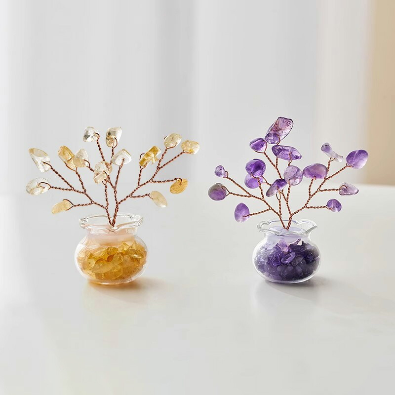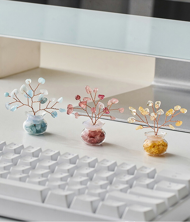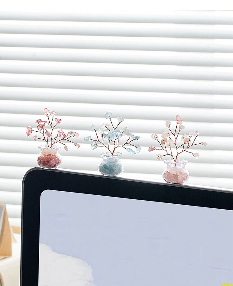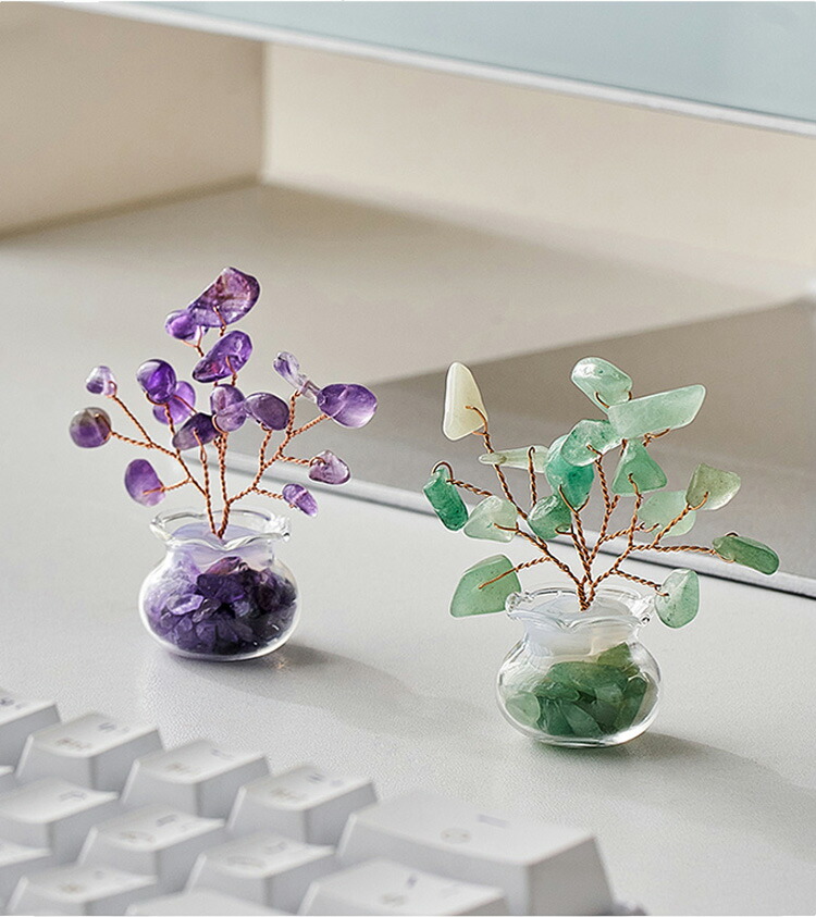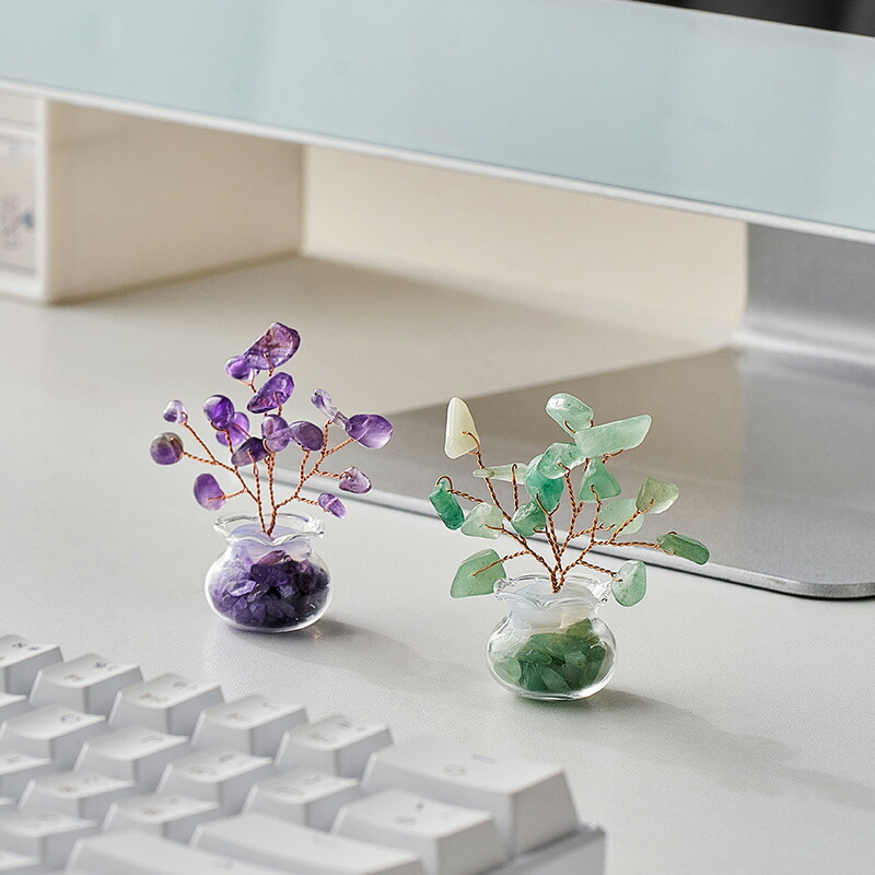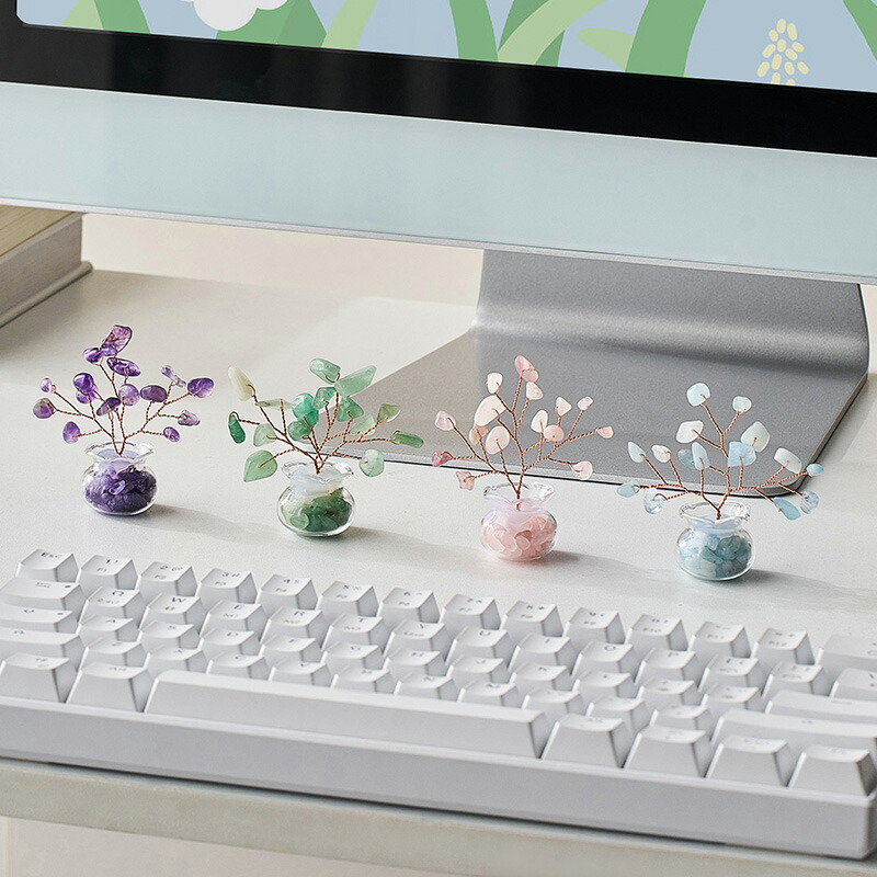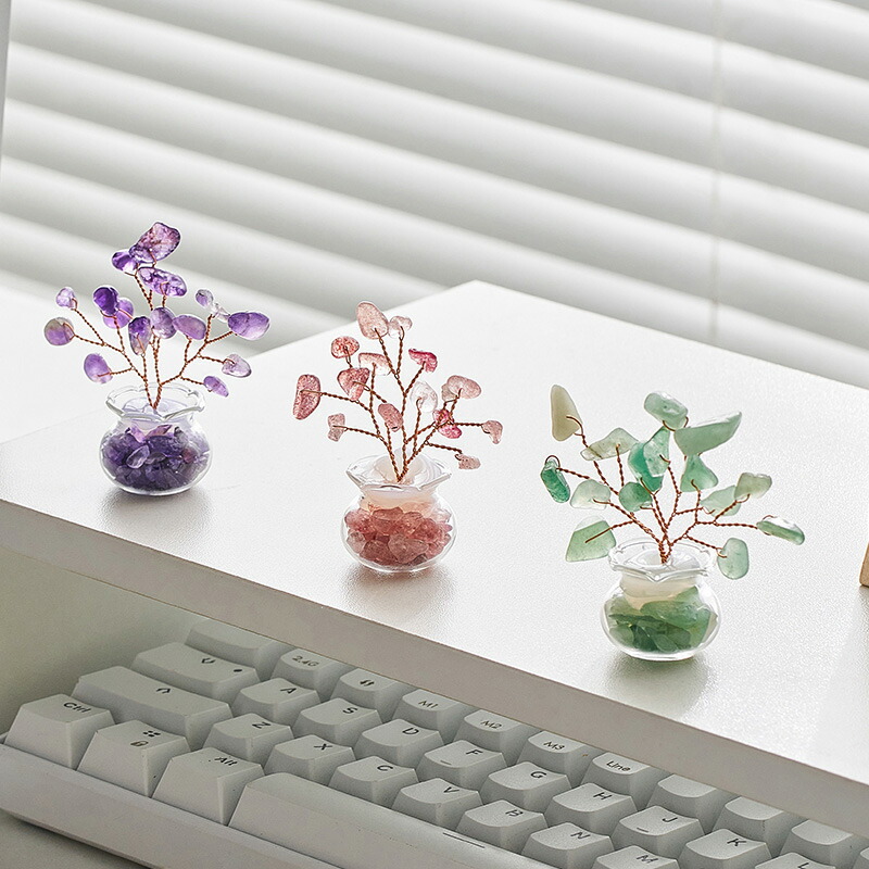 天然石 パワーストーン かわいい 木形 パープル(魔よけ) イエロー(財運) ブルー(幸福) グリーン(幸運) ピンク(縁結び)