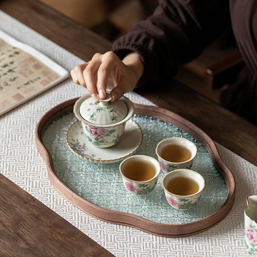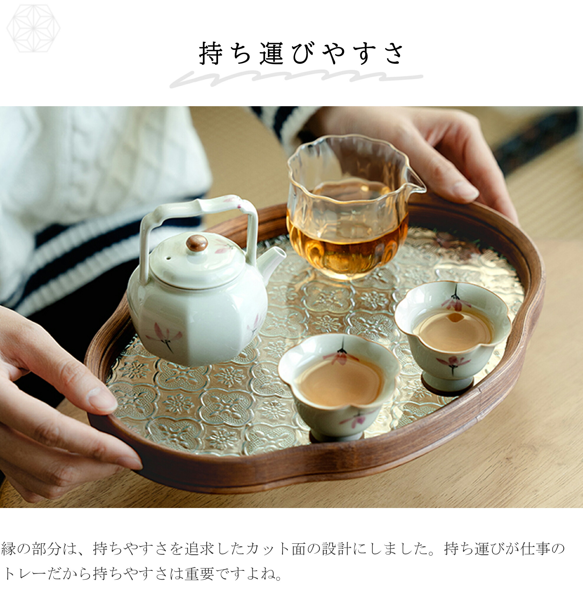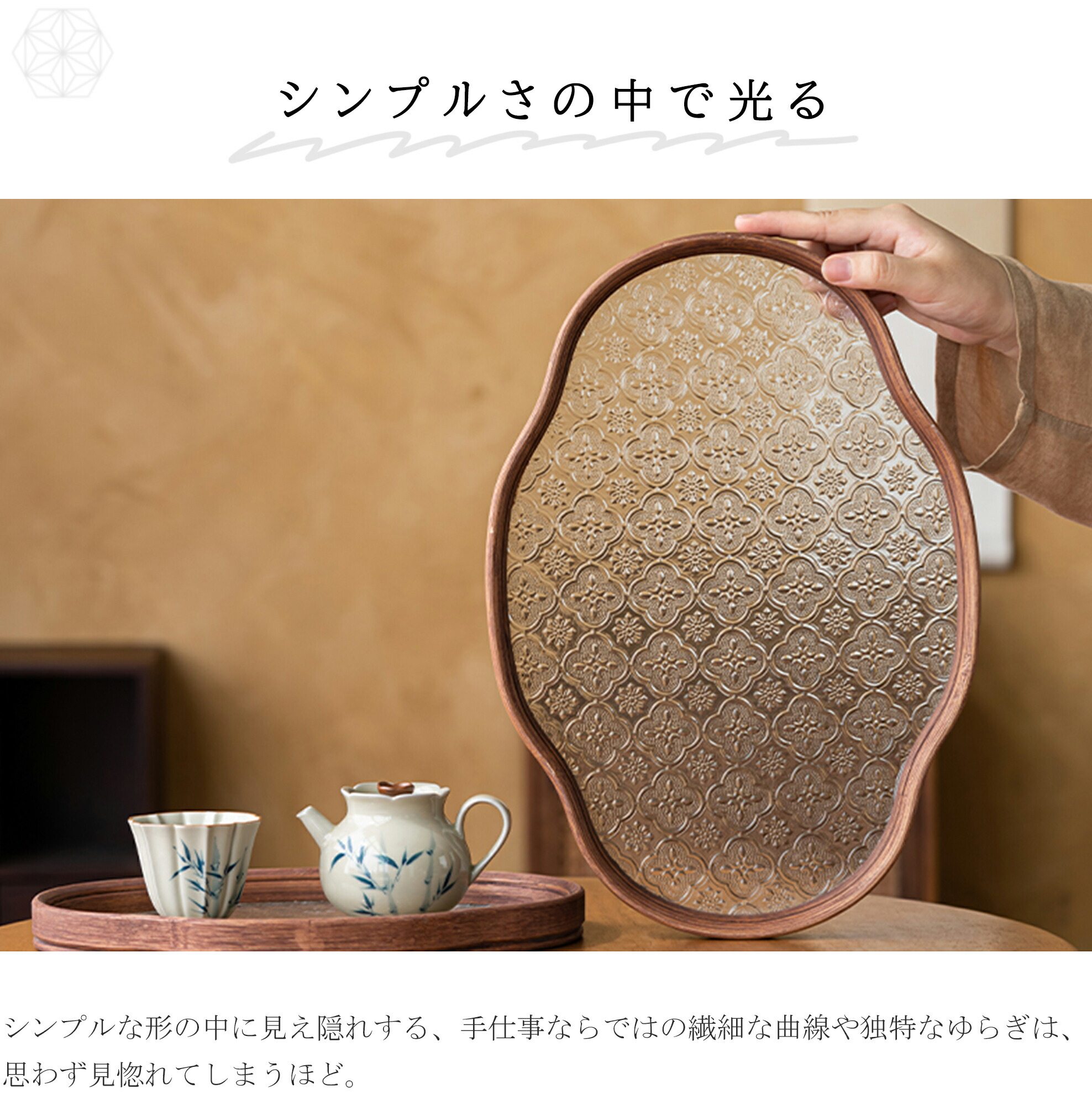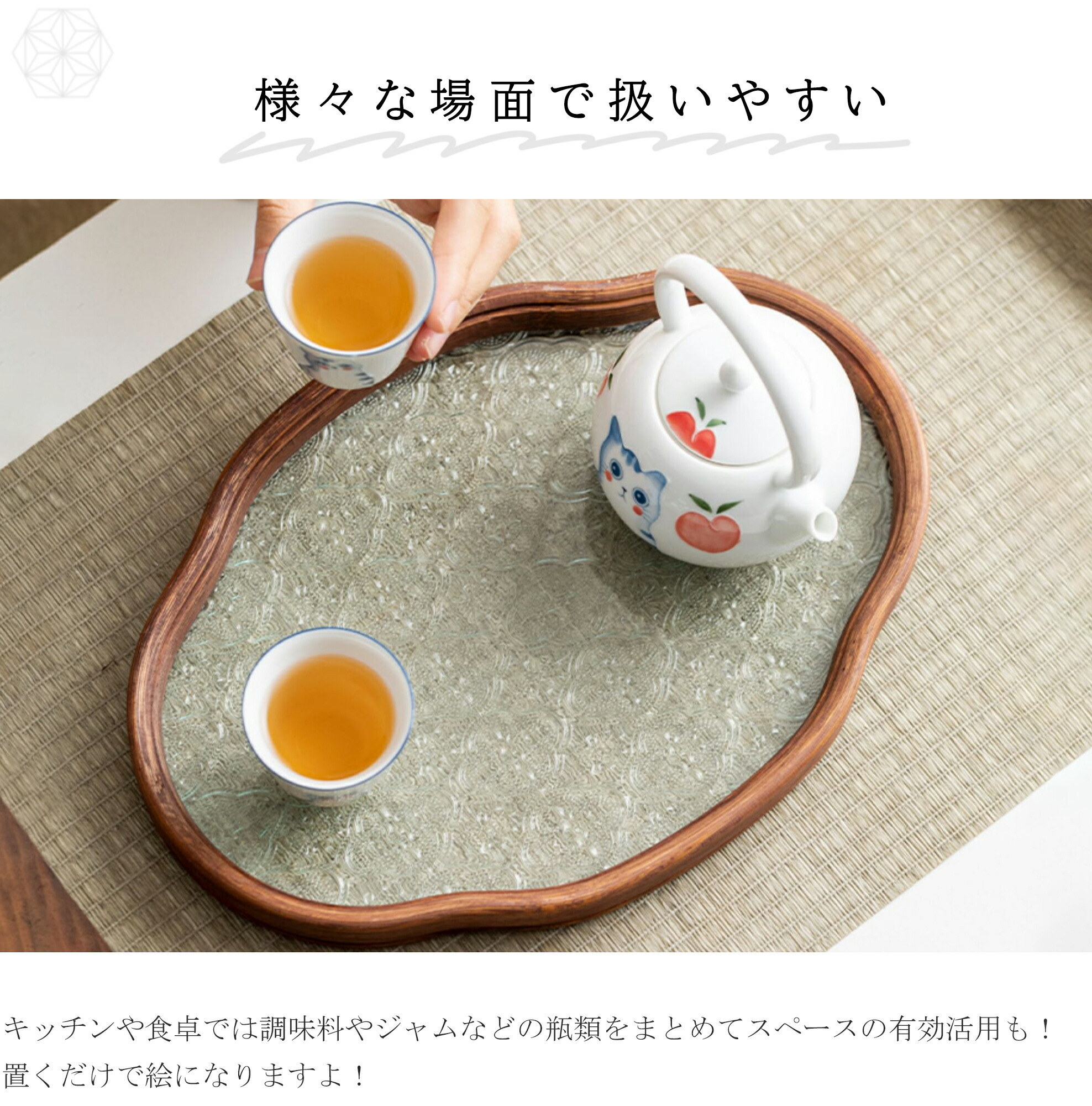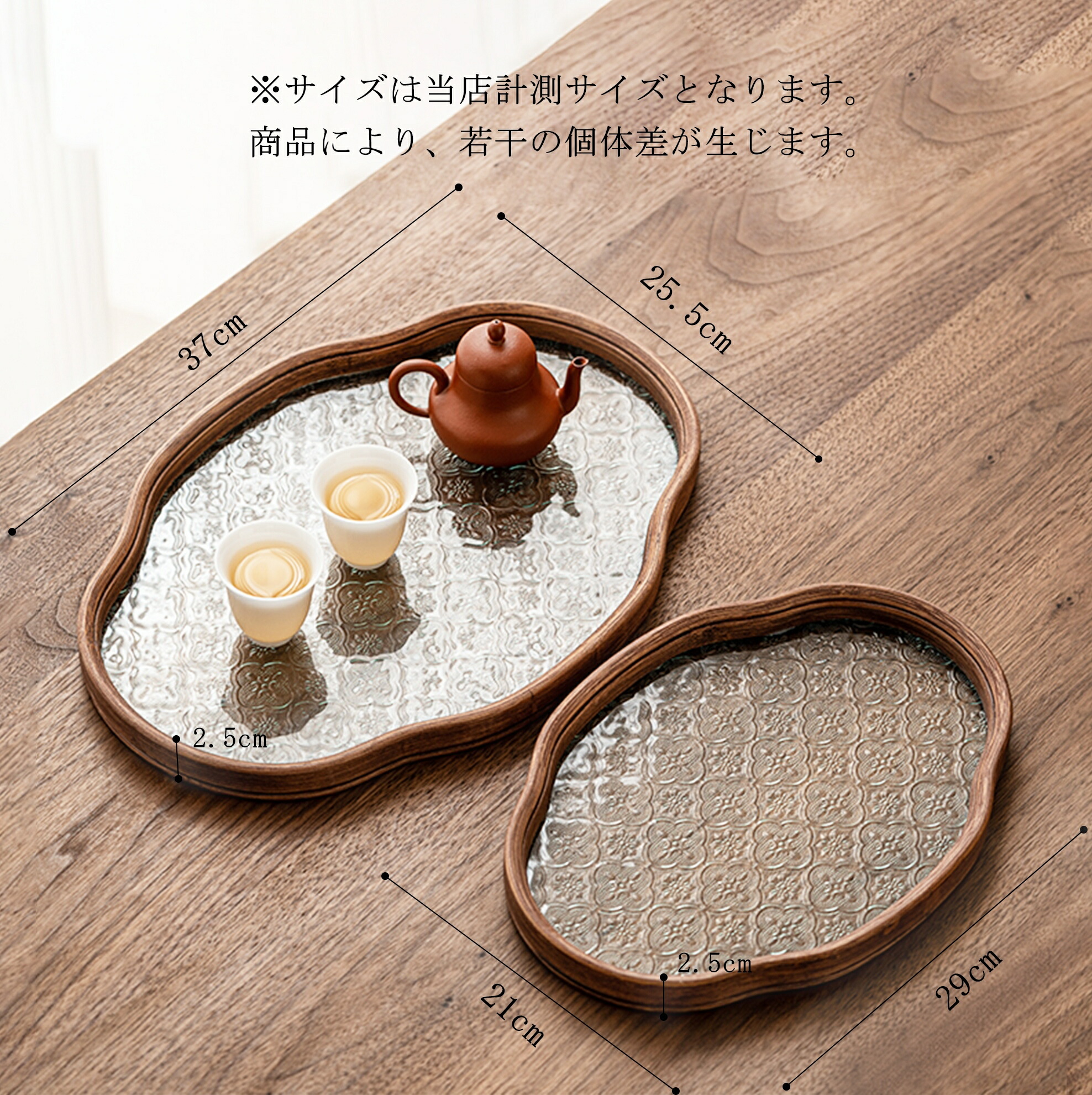 手になじむ天然木の温もり。気品あふれるガラスと木製のトレーです。