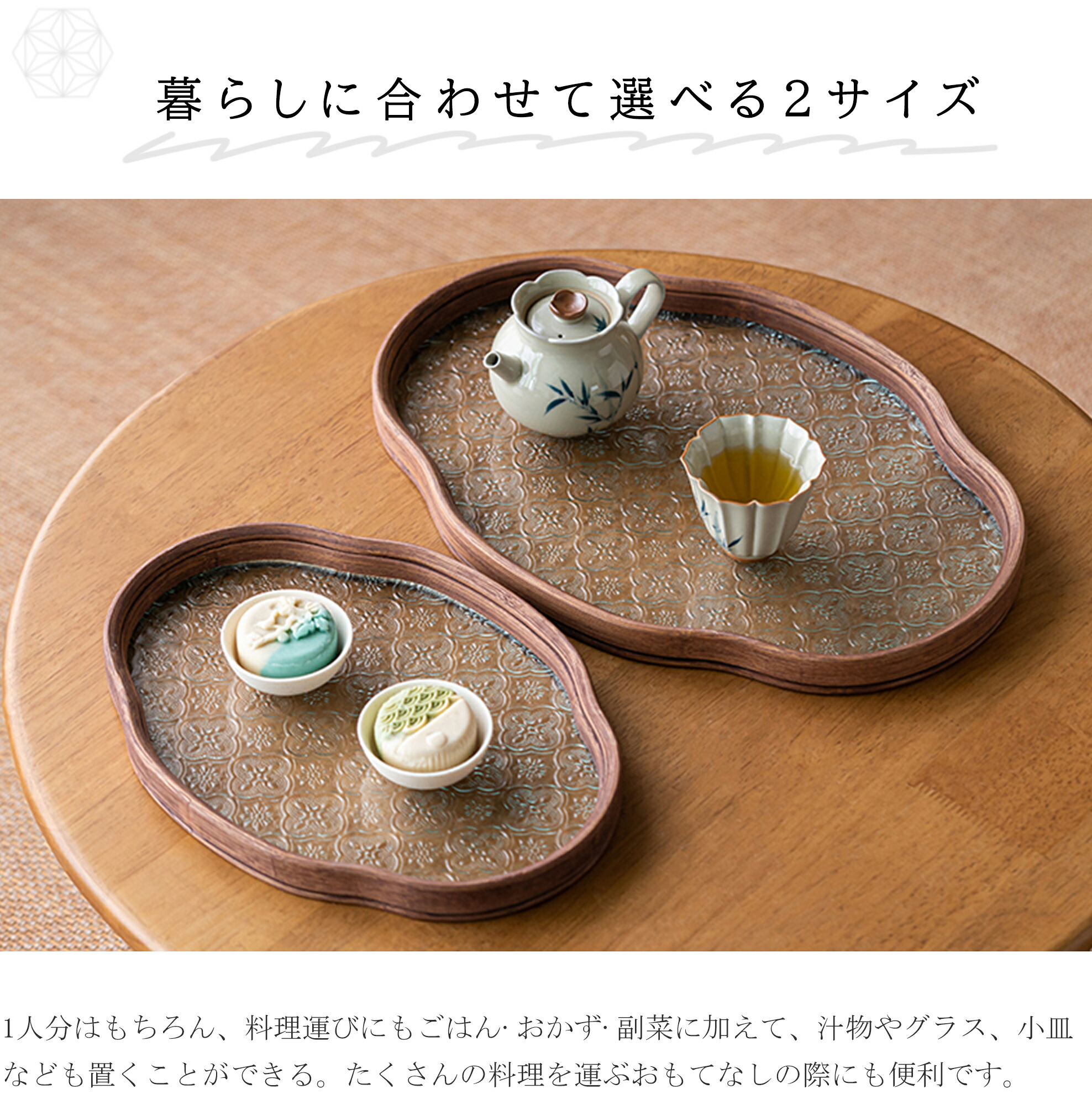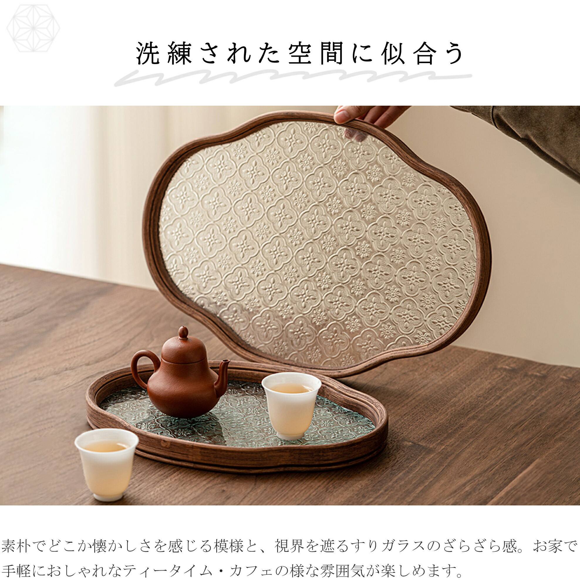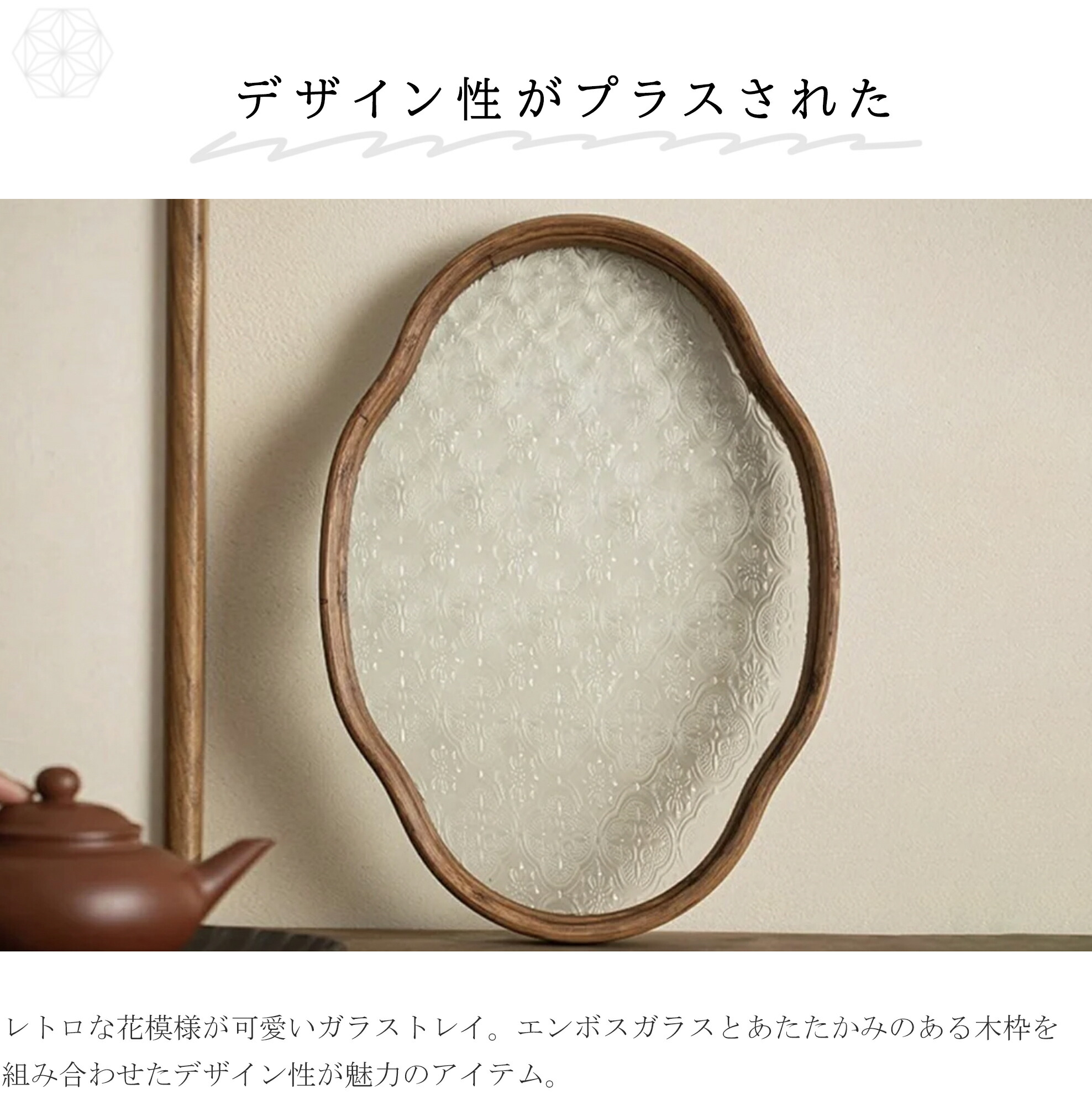 IwaiLoft花海棠トレー ガラス トレイ カフェトレー ティートレー 盛器 雲型 楕円 お皿 小皿 プレート 木トレー 30cm 35cm おしゃれ フローラガラス ガラスプレート 収納 ガラス皿