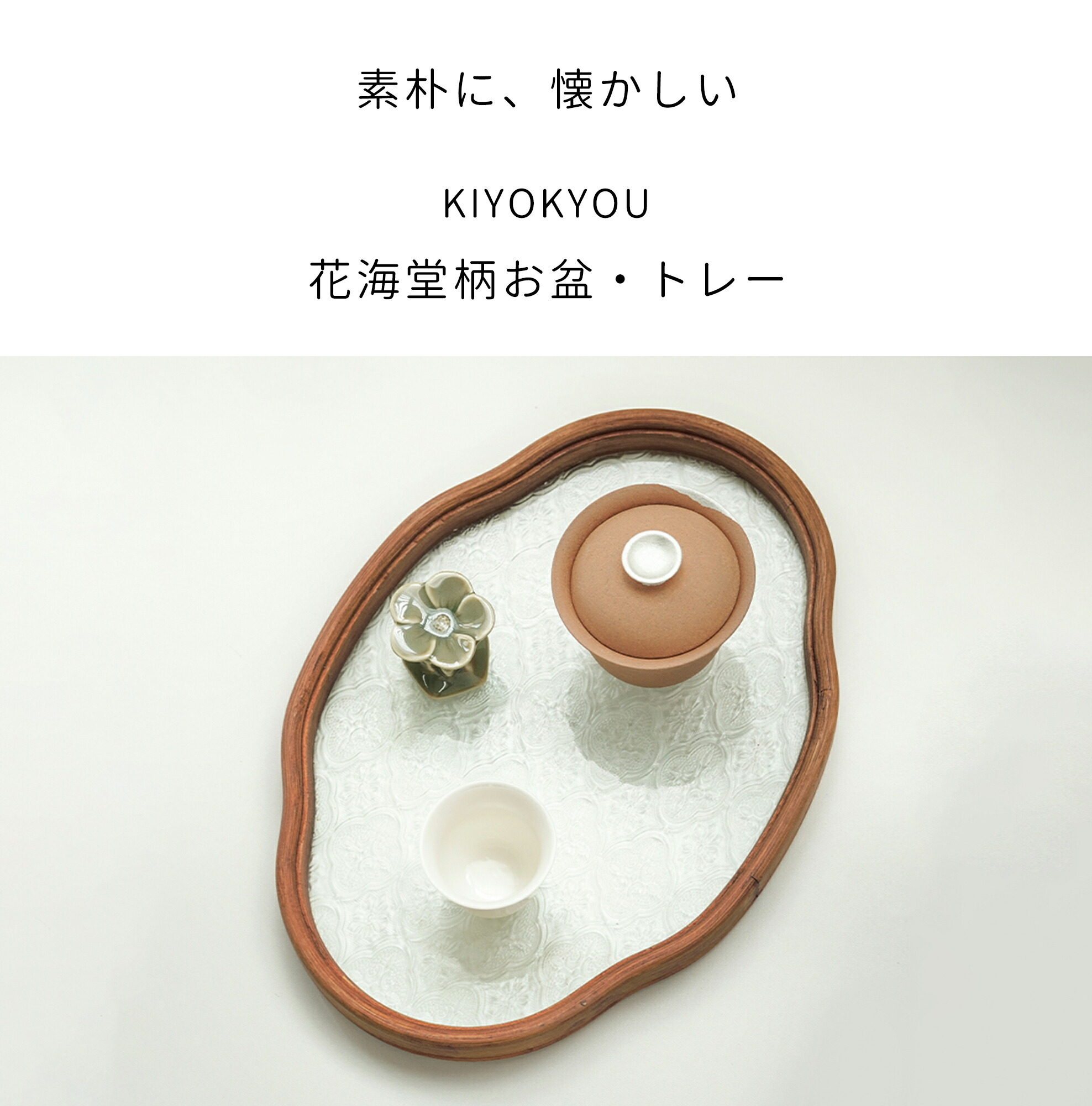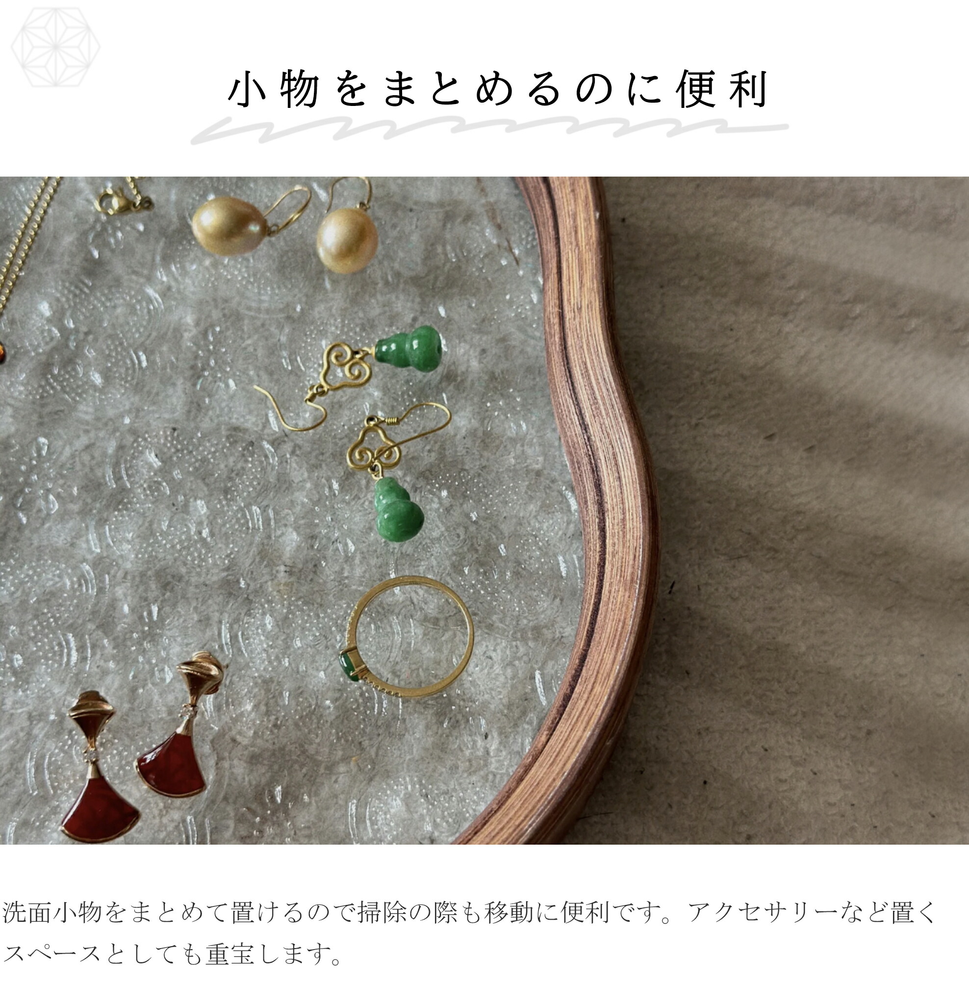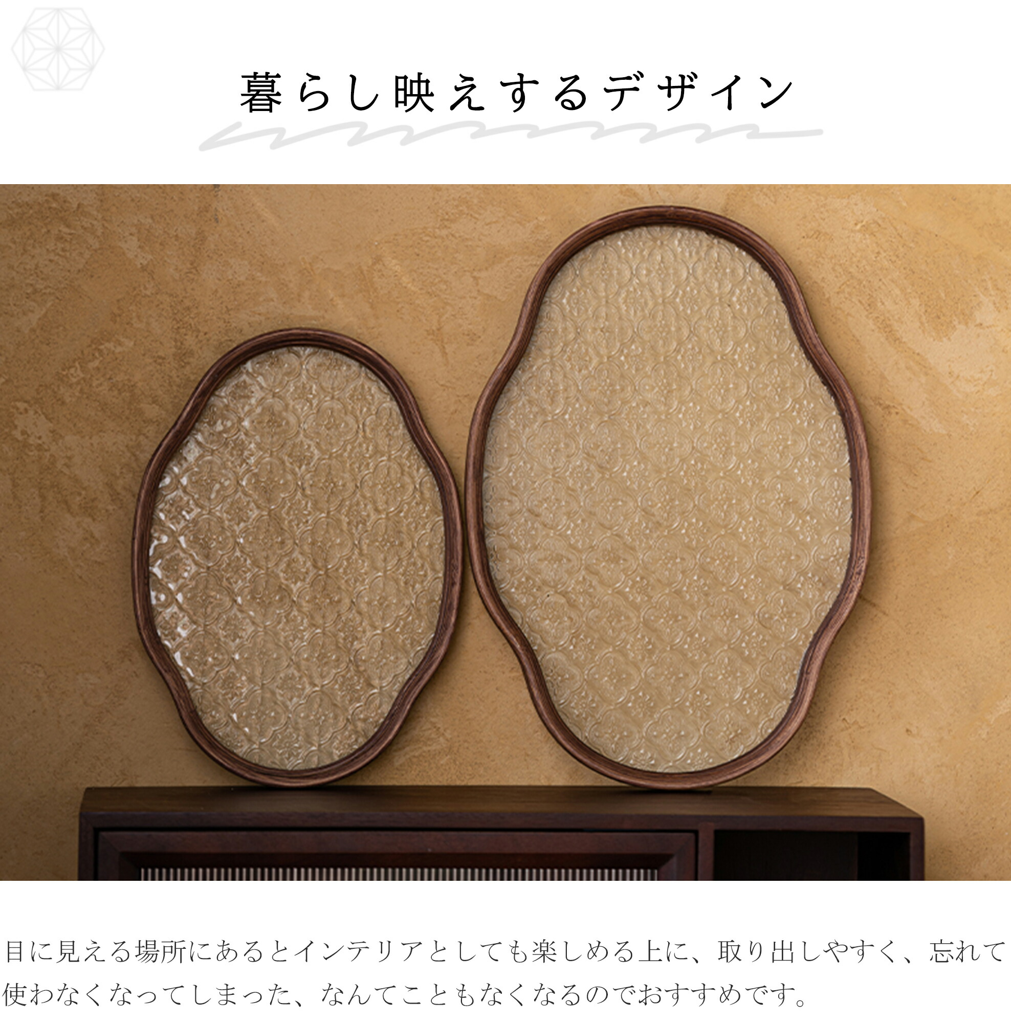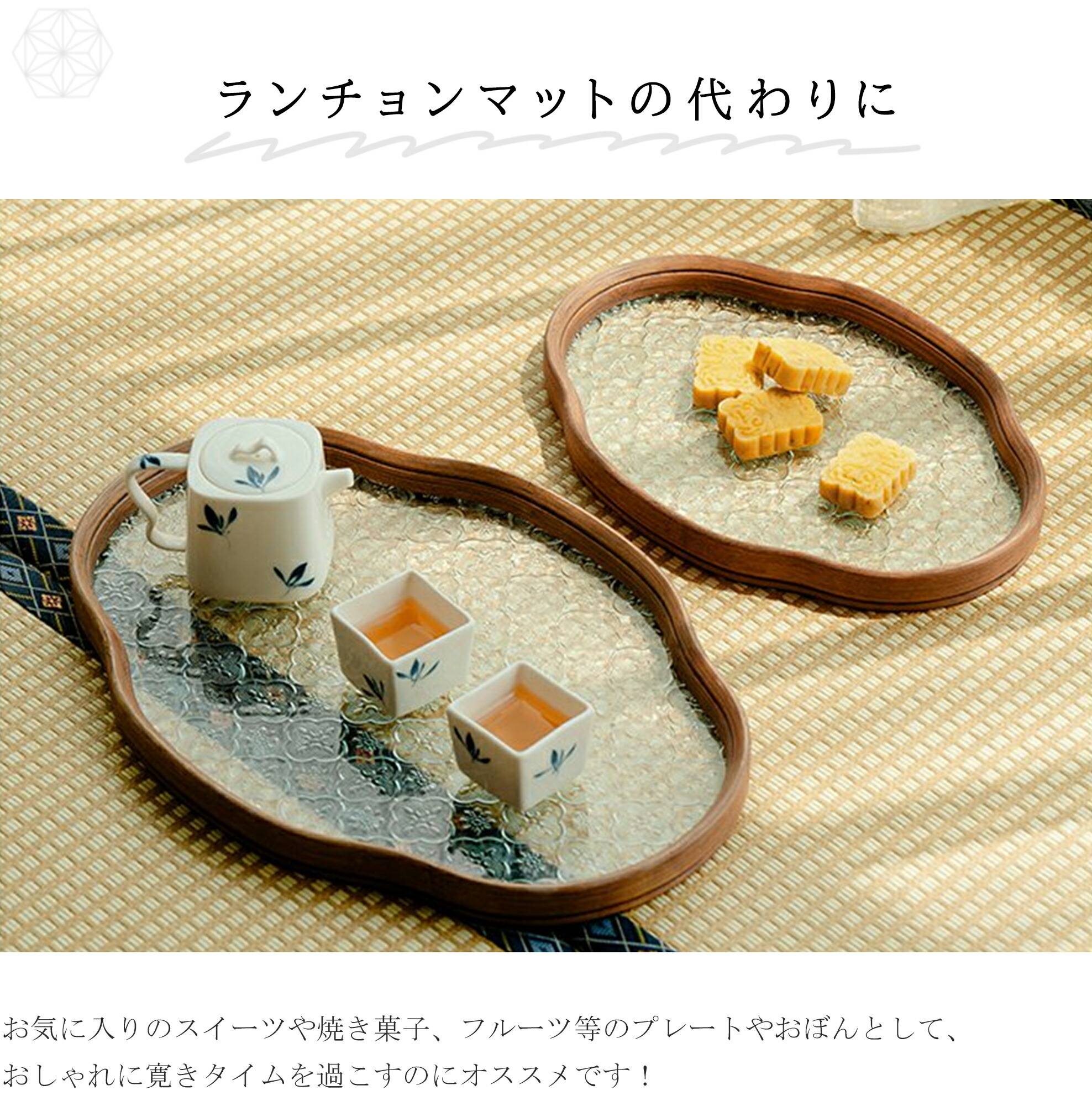 IwaiLoft花海棠トレー ガラス トレイ カフェトレー ティートレー 盛器 雲型 楕円 お皿 小皿 プレート 木トレー 30cm 35cm おしゃれ フローラガラス ガラスプレート 収納 ガラス皿