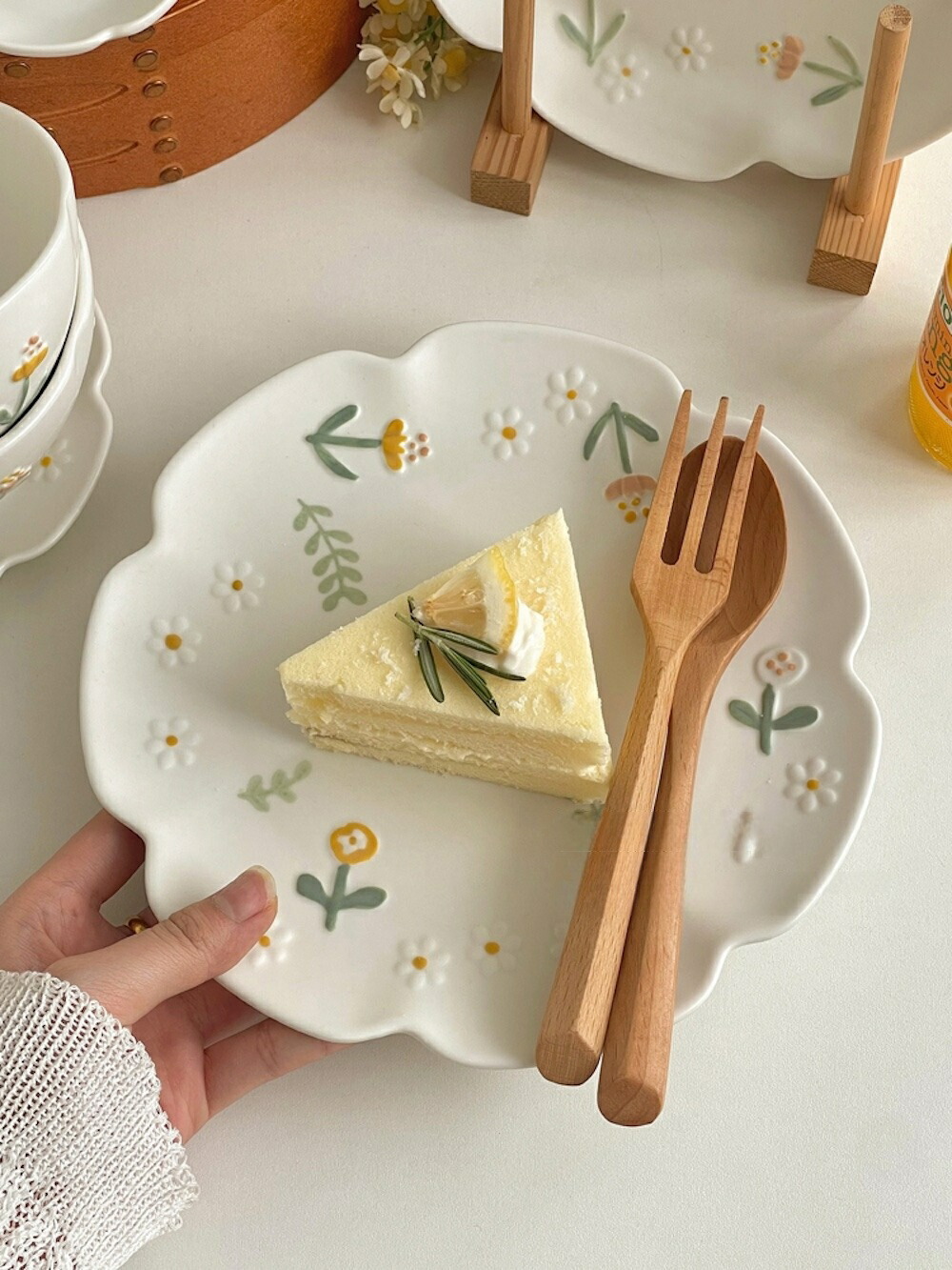 美しい 小花 プレート ワンプレート オリジナル 癒される ケーキ コースター お皿 食器 人気 カフェ食器 おしゃれ トレイ ディナープレート かわいい キッチン用品 母 北欧お皿