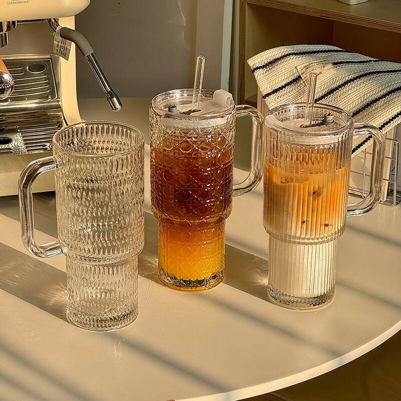 ins風 マグカップ ガラスコップ 大 食器 カトラリー グラス グラス タンブラー タンブラー 早い者勝ち 石目調 縦縞 ダイヤモンド 雨だれ なし 付き