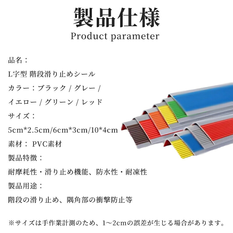 階段段鼻エッジトリムゴム滑り止め踏板階 ブラック ??イエロー グレー グリーン レッド 5x2.5cm 6x3cm 10x4cm