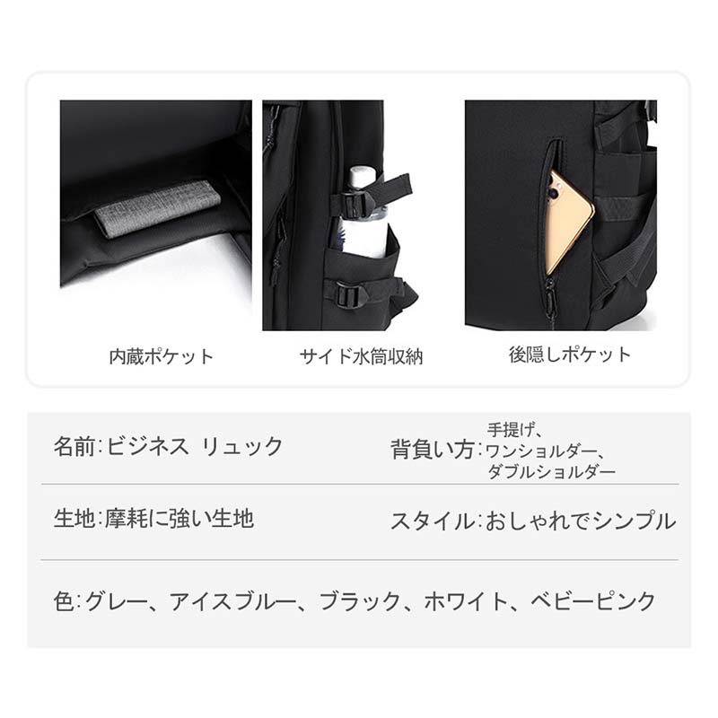 大容量 軽く感じる ビジネス リュック バッグ メンズバッグ バックパック リュック 続々入荷中 アイスブルー グレー ブラック ベビーピンク ホワイト