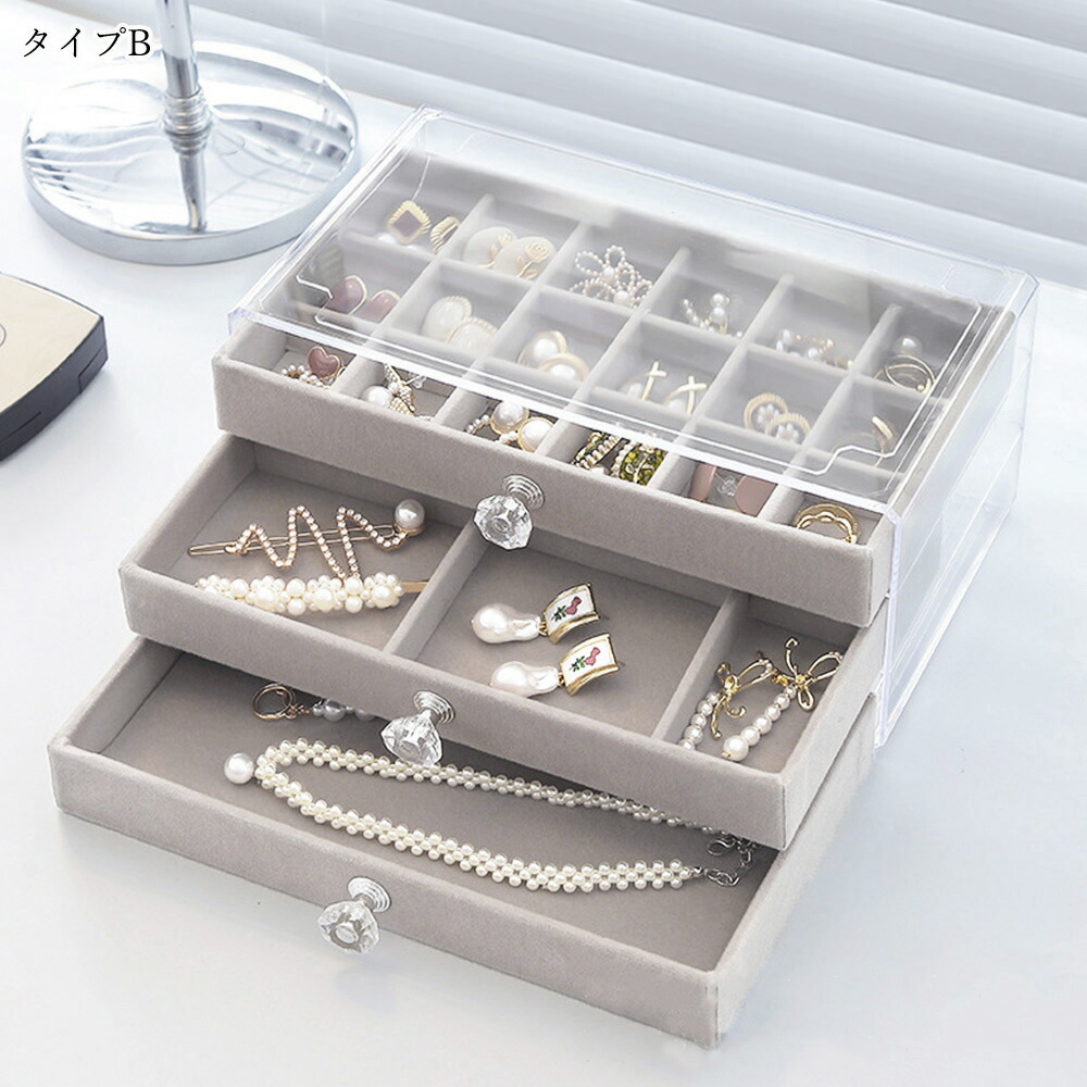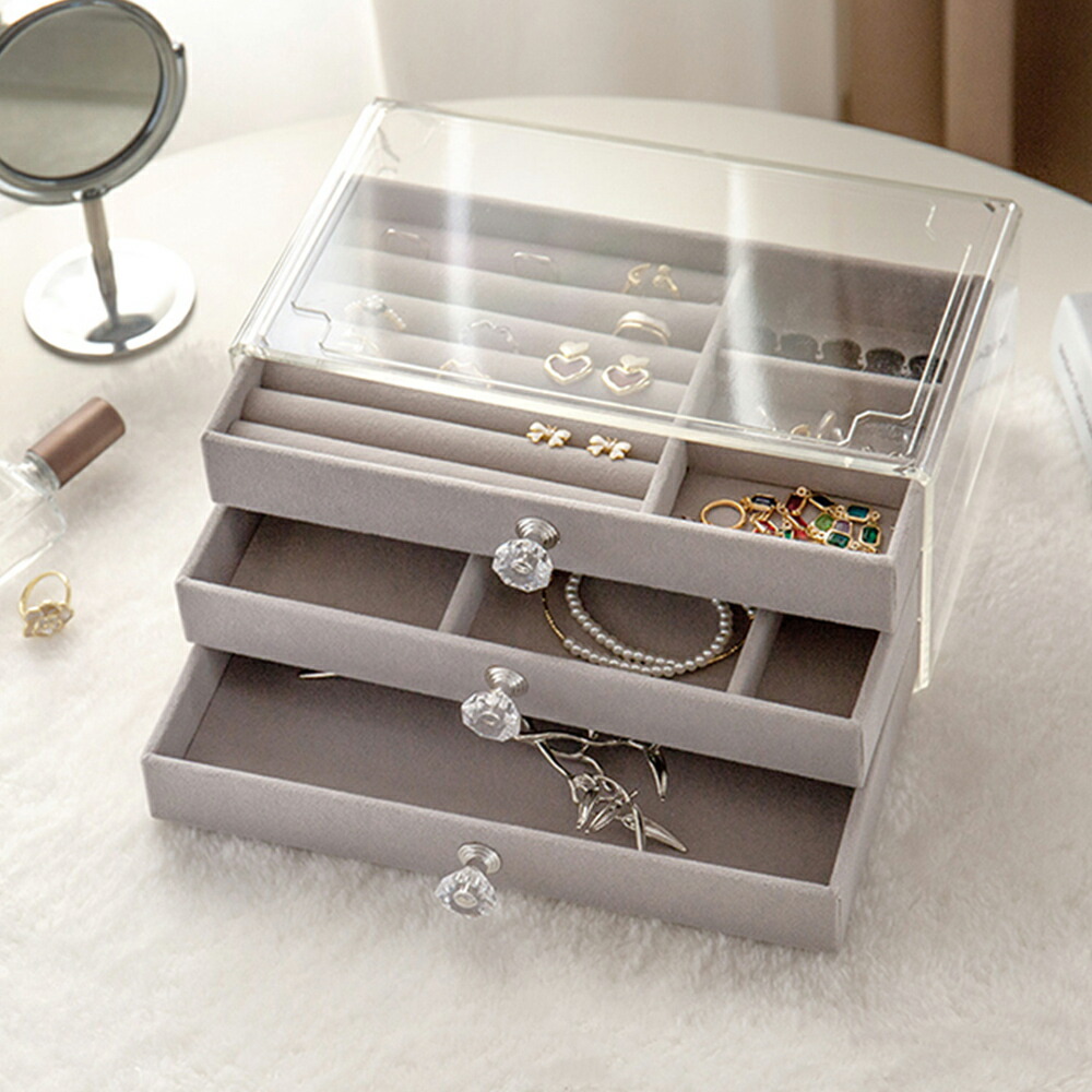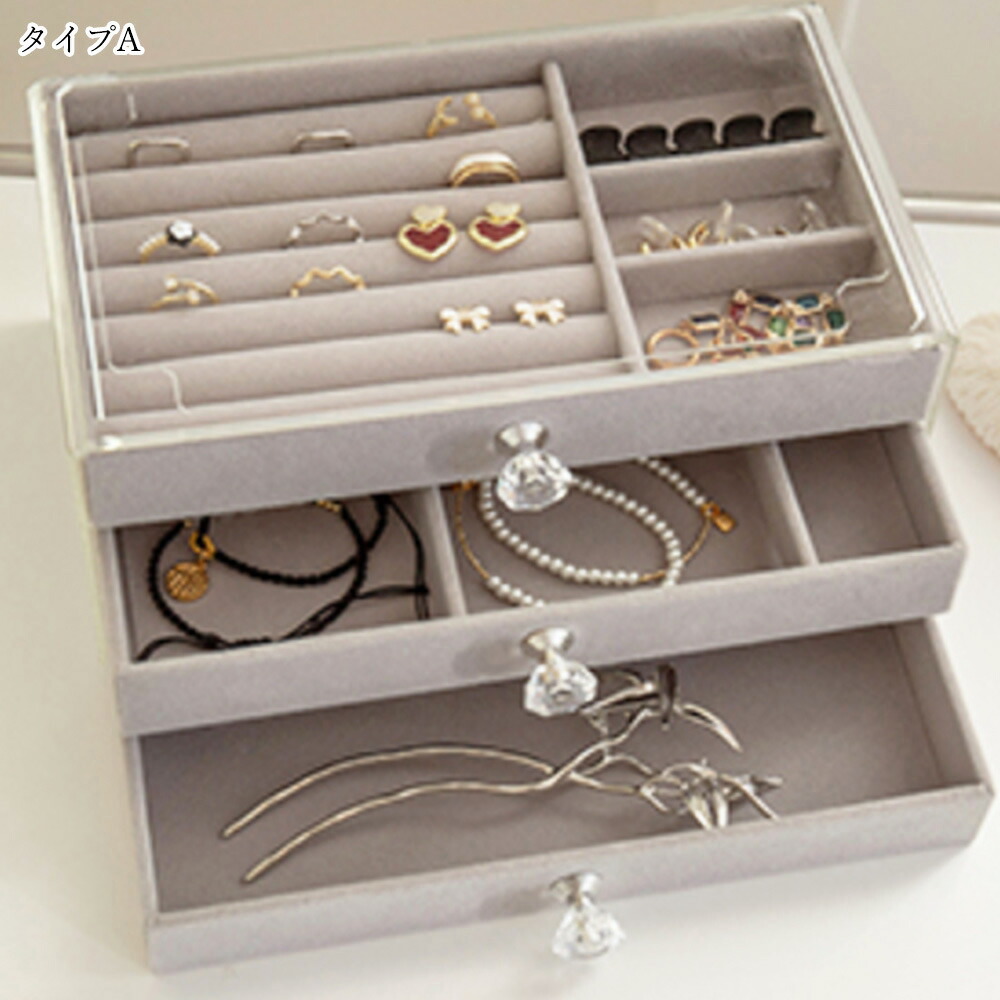 3段引き出しジュエリー収納ボックス 防 ジュエリー アクセサリー用品 収納ボックス ケース 続々入荷中 A(リング収納付き)グレー A(リング収納付き)ベージュ B(仕切り*24)グレー B(仕切り*24)ベージュ C(仕切り*36)グレー C(仕切り*36)ベージュ