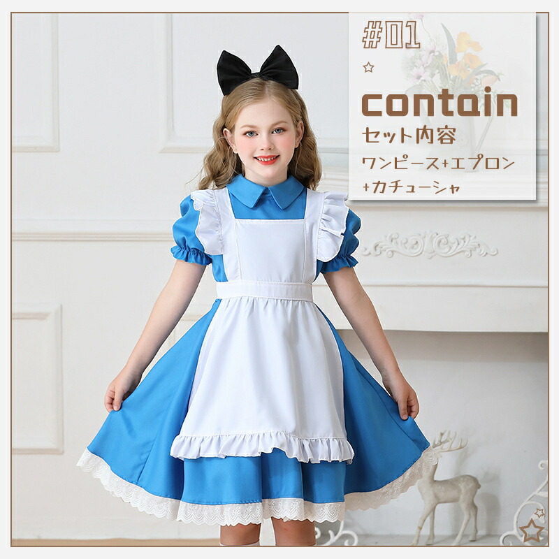 ハロウィン衣装 子供 女の子 アリス風 コスプレ 変装 仮装 コスチューム一式 新登場! 1(3点セット) 2(4点セット) 110cm 120cm 130cm 140cm 150cm 160cm
