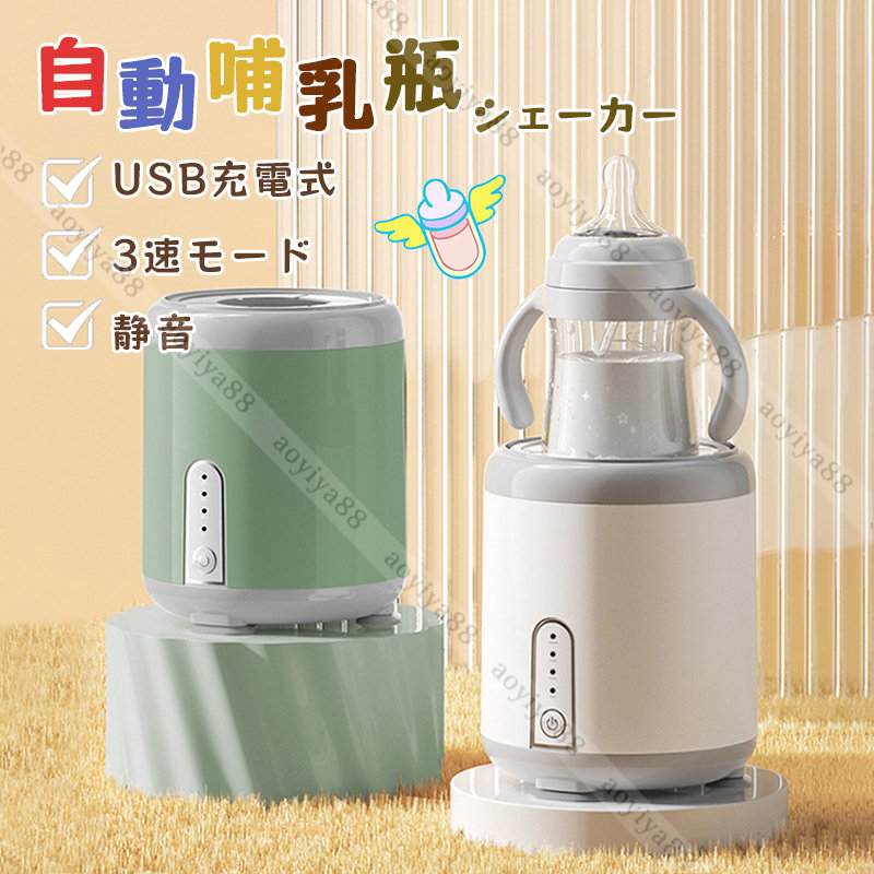 自動哺乳瓶シェーカー 電動 ボトルシェ ホワイト グリーン