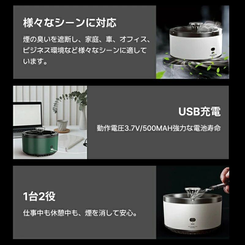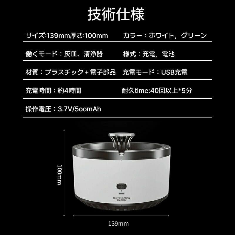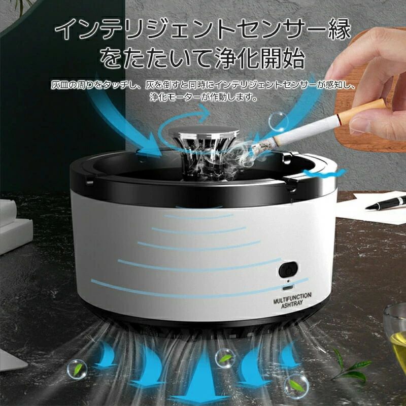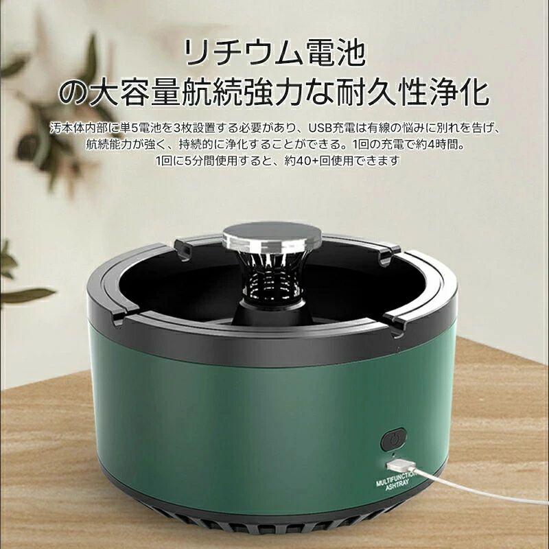 空気清浄用灰皿 空気清浄機 煙草 タバ 喫煙具 灰皿 特集 ホワイト グリーン 電池タイプ 充電タイプ