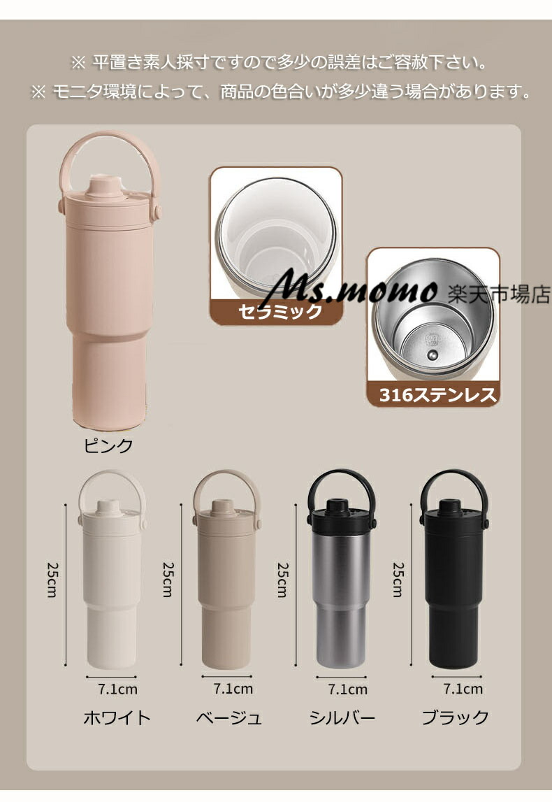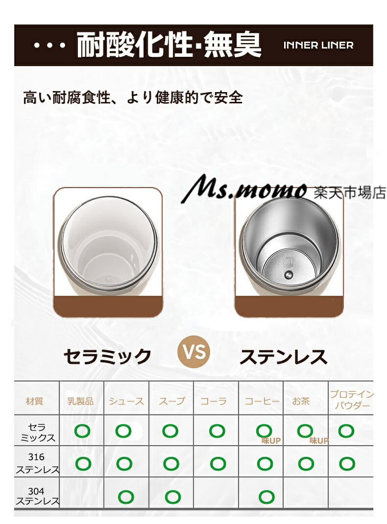 セラミック タンブラー セラミックコー 弁当箱 水筒 水筒 マグボトル 特集 ホワイト ベージュ シルバー ブラック ピンク セラミック(インナー) 316ステンレス(インナー)