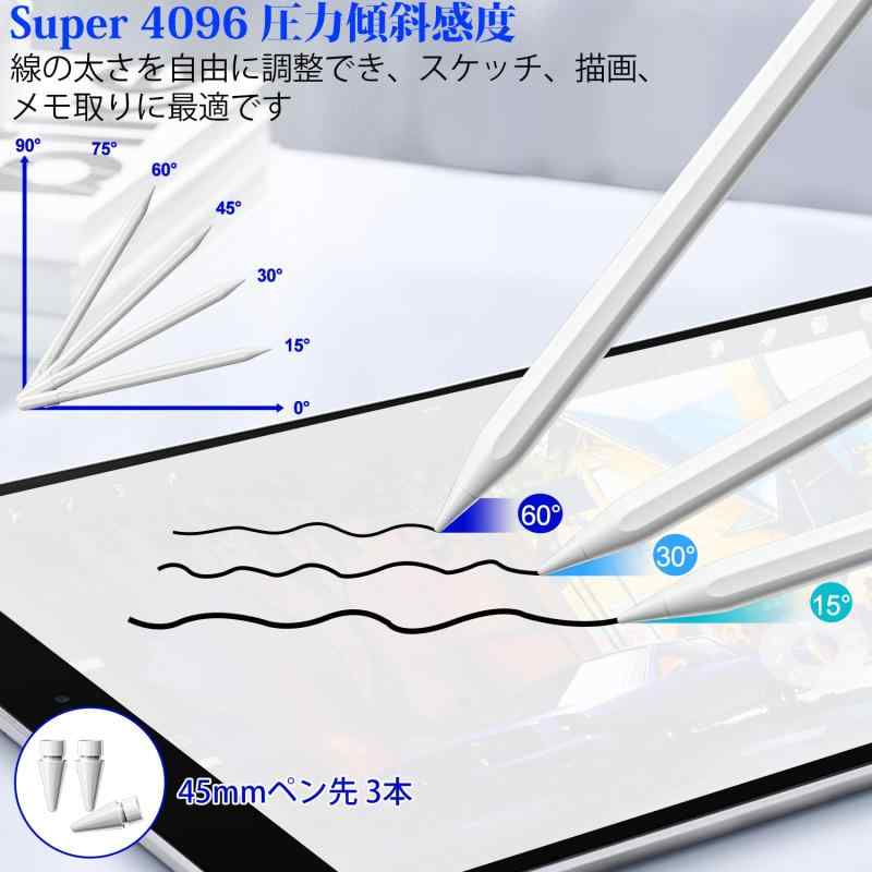 iPad 2025-2018用スタイラスペン、USB-C急速充電ipad ペン、4096傾斜感度ipad ペンシル、i-Pad A16/11/10/9/8/7/6/, Mini 6/5, Air M3/M2 11インチ/13インチ/第5世代/第4世代/第3世代、Pro M4 13インチ/12.9インチ/11イン