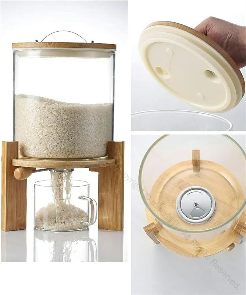 米びつ ガラス製 密閉ふた付き計量カッ 保存容器 調味料入れ 米びつ 人気 5L 8L 5L(土台なし) 8L(土台なし)