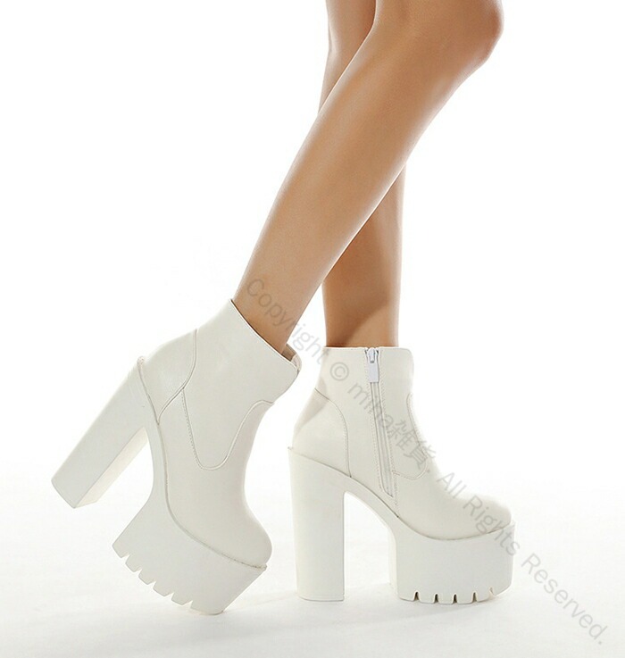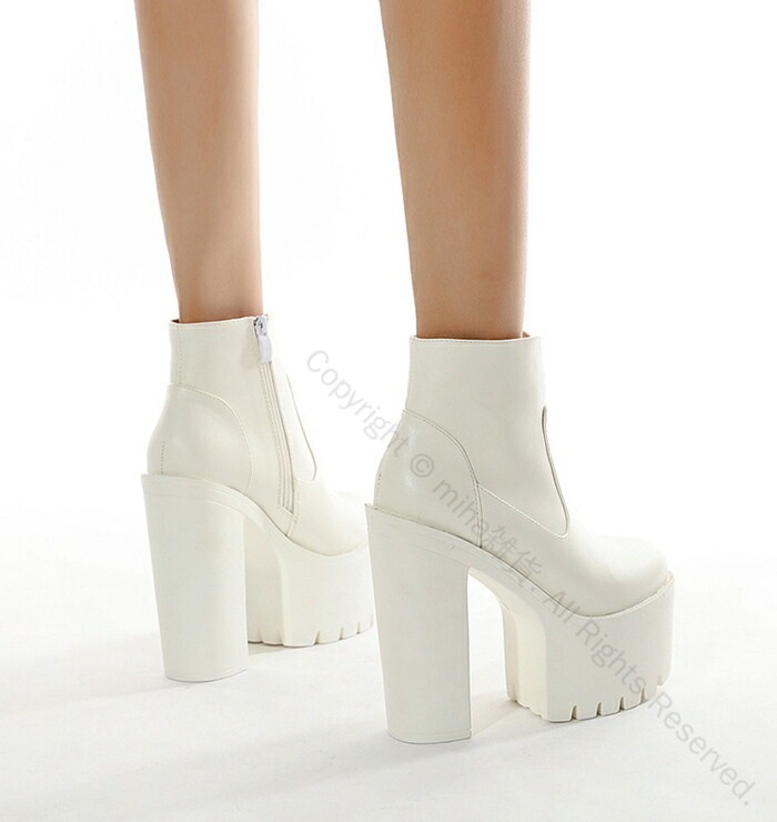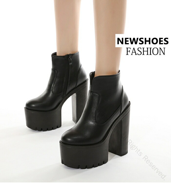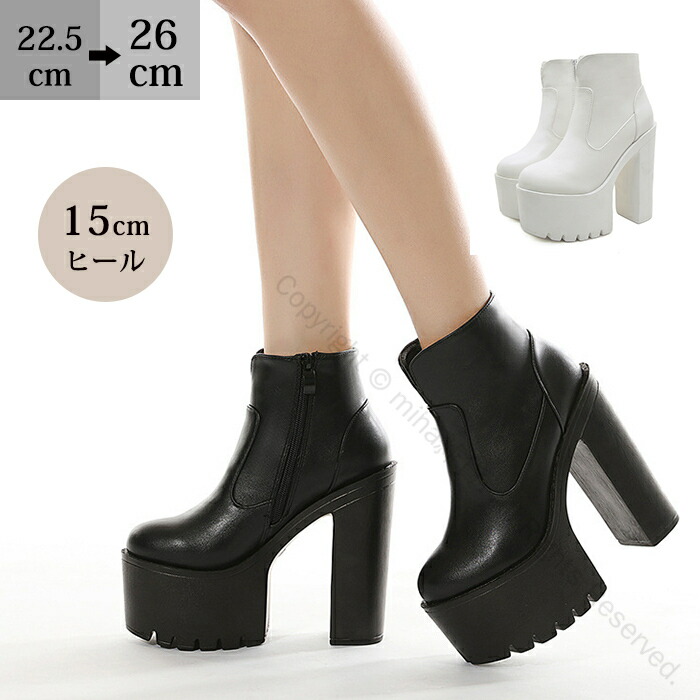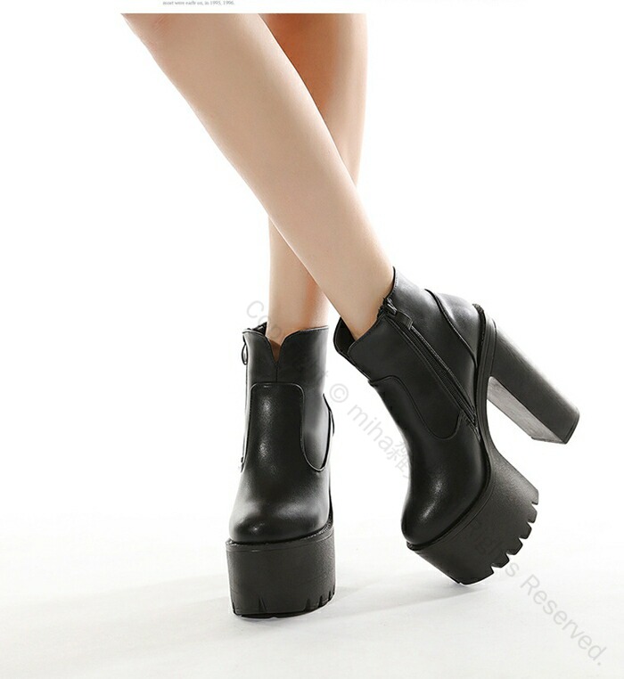 ロリータ 美脚 ハイヒール 厚底 ショートブーツ チャンキーヒール 安定感 サイドファスナー レディース 15cm パーティー イベント 通勤 通学 無地 耐久性 歩きやすい 痛くない 革素材
