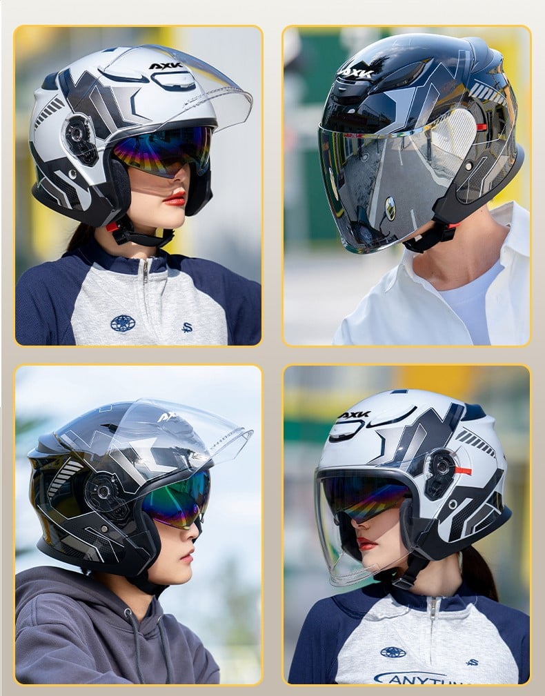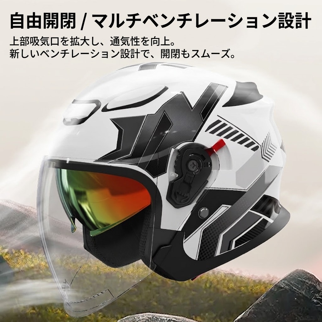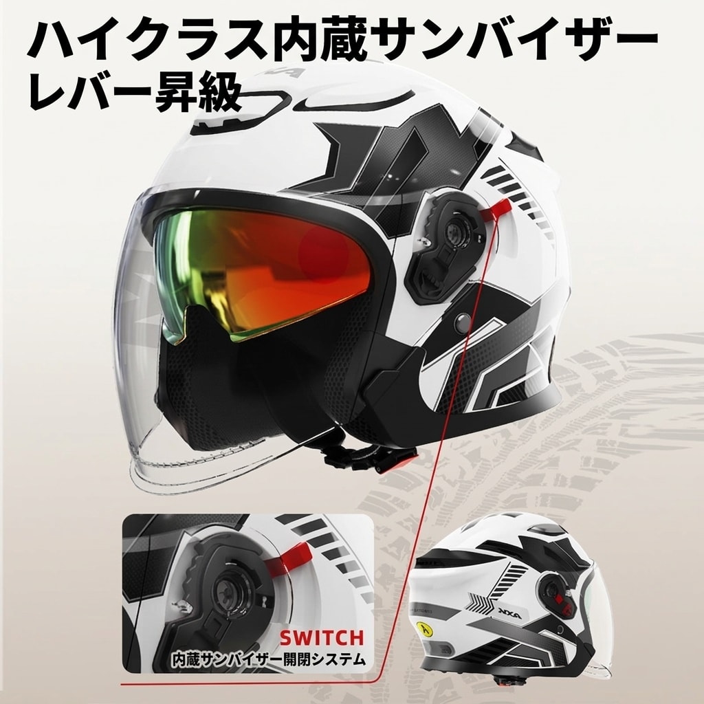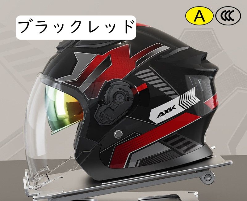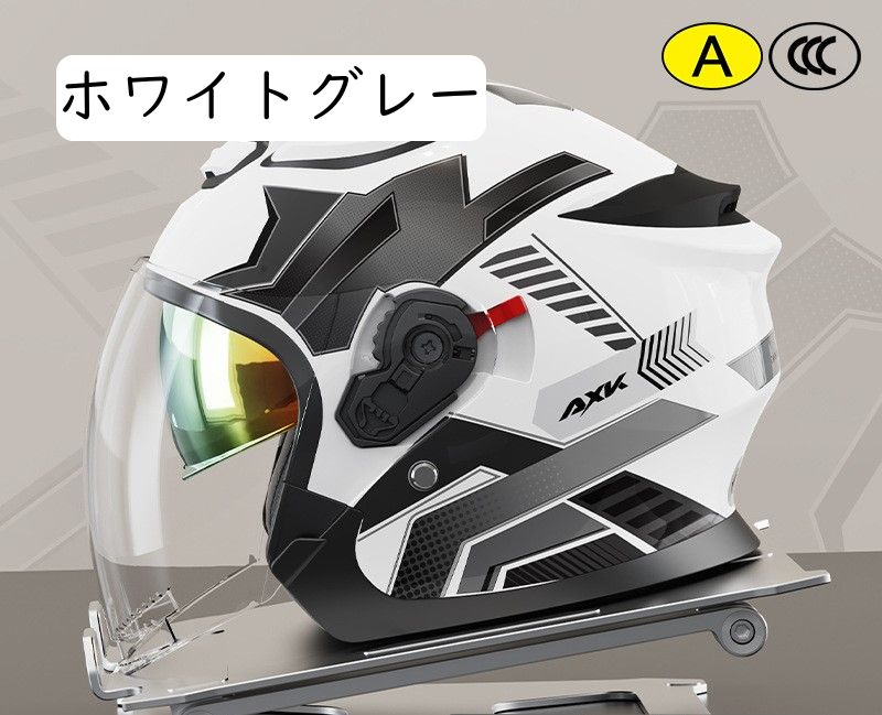 バイクヘルメット ジェットヘルメット ホワイトグレー ブラックレッド ブラック