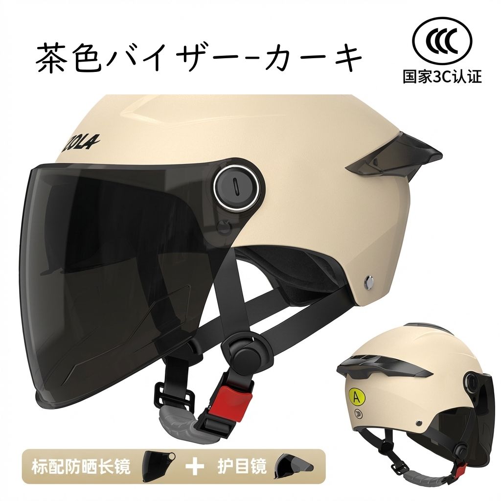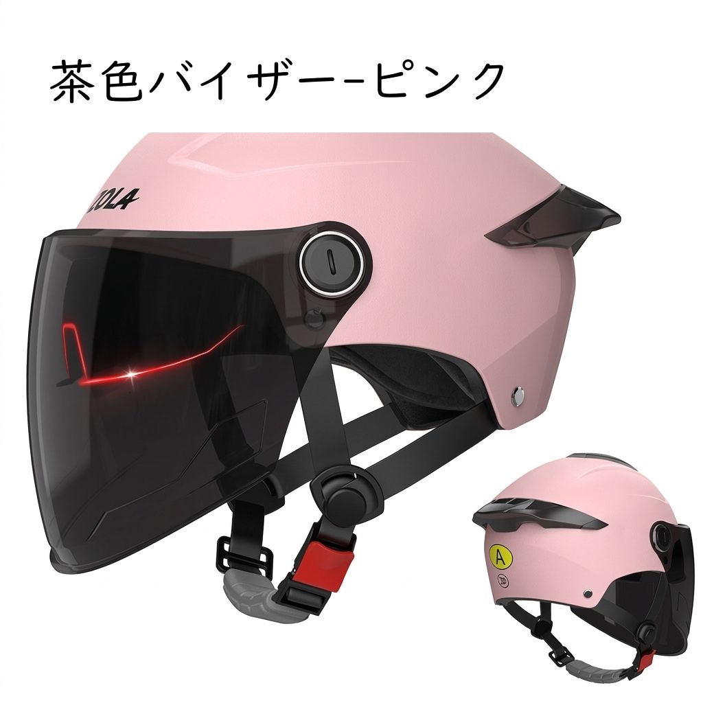 バイクヘルメット ハーフ ジェットヘル 茶色バイザー-白 茶色バイザー-ピンク 茶色バイザー-黒 茶色バイザー-グレー 茶色バイザー-カーキ 茶色バイザー-ブルー ダブルシールド-白色 ダブルシールド-粉色 ダブルシールド-黒 ダブルシールド-グレー ダブルシールド-カーキ ダブルシールド-ブルー