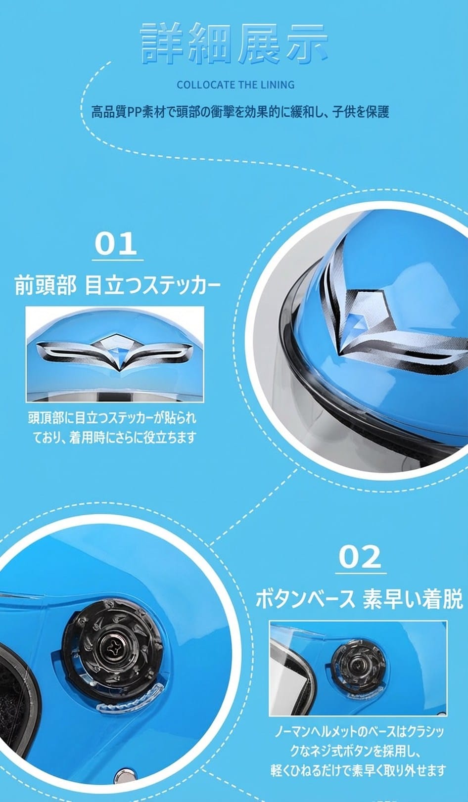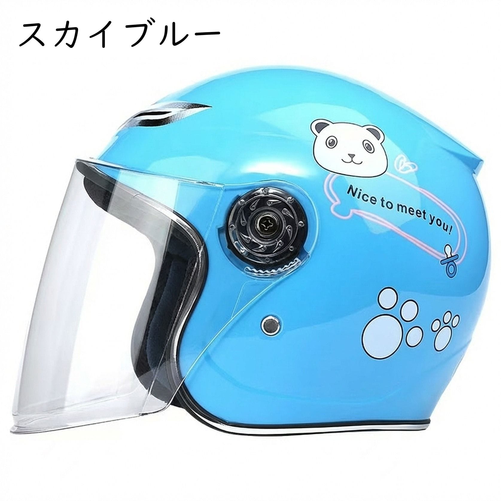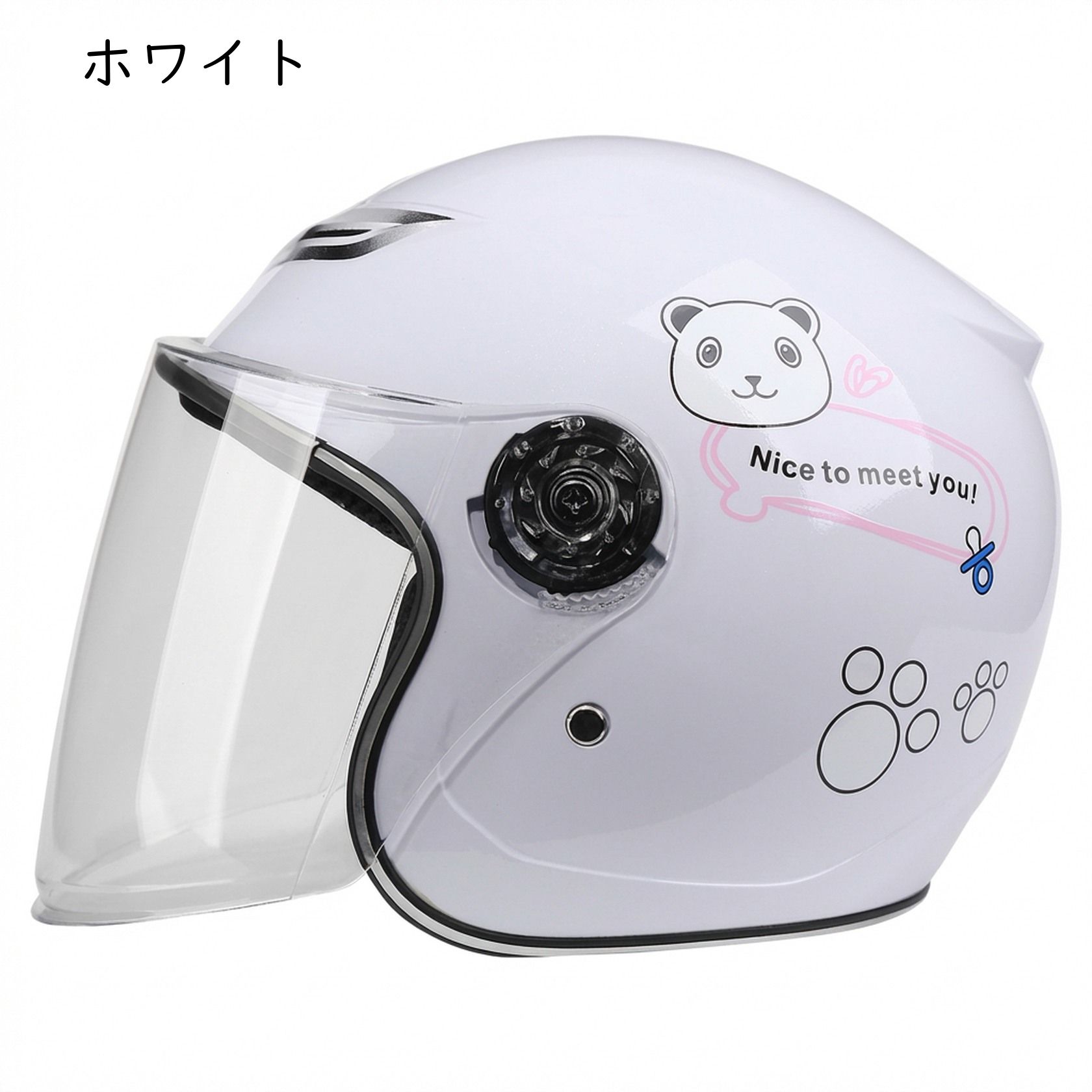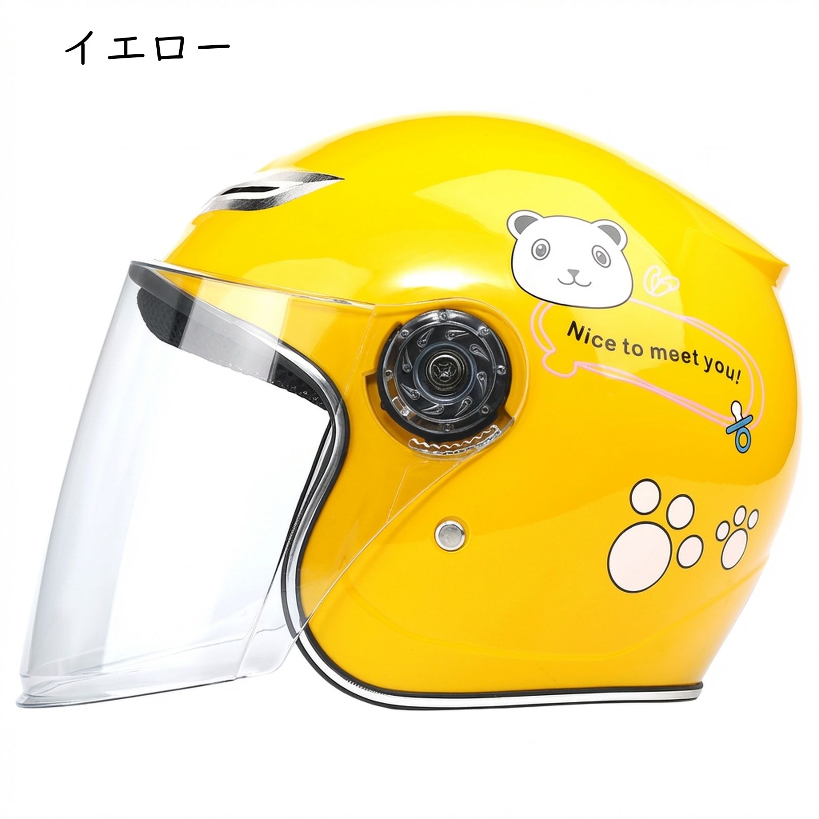 バイクヘルメット 子供用 ジェットヘル ホワイト ネイビー ブラック 赤色 イエロー イエロー2 ライトピンク 薄灰色 ピンク2B スカイブルー