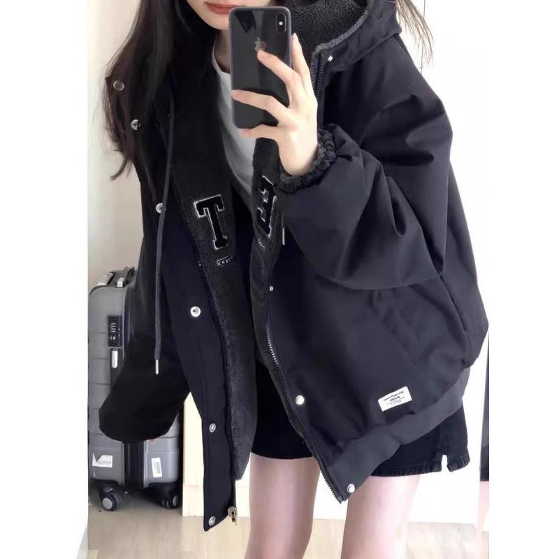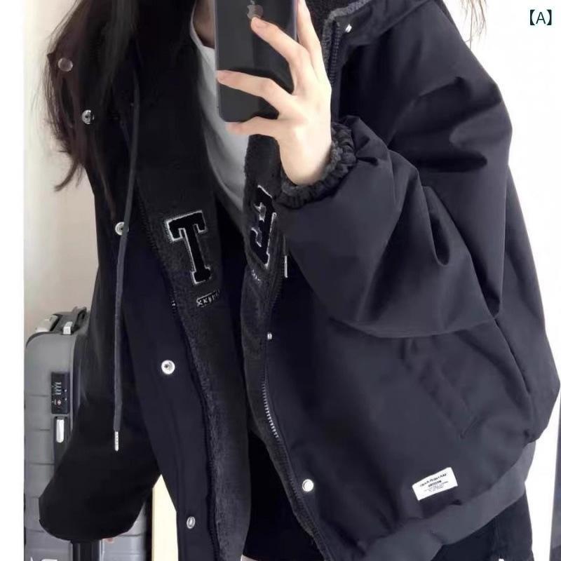 スタジアムジャンパー レディース ボア コート ジャケット 早い者勝ち A:黒色加絨版両面着 B:茶色加絨版両面着 S M L XL 2XL 3XL