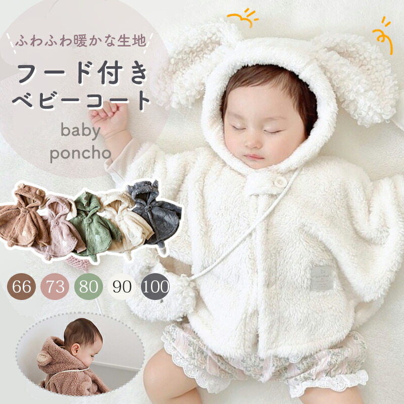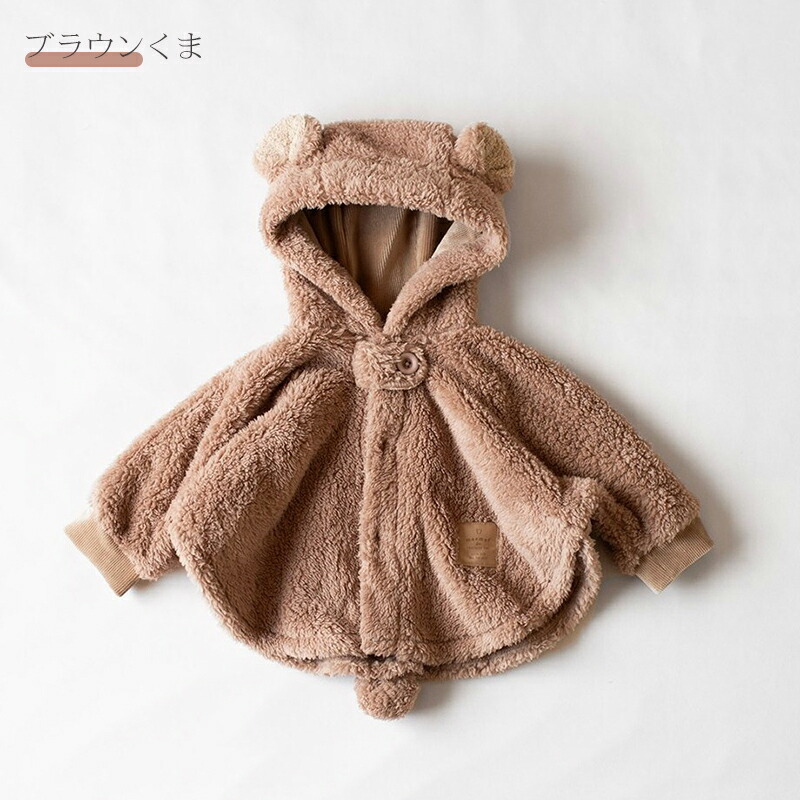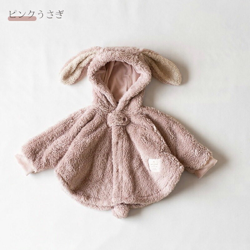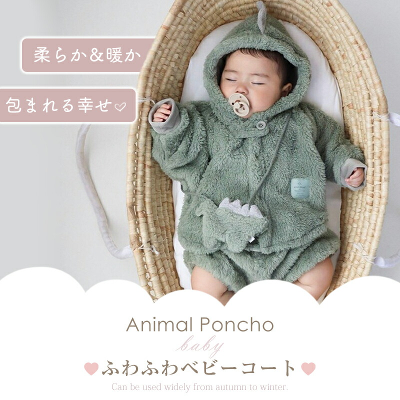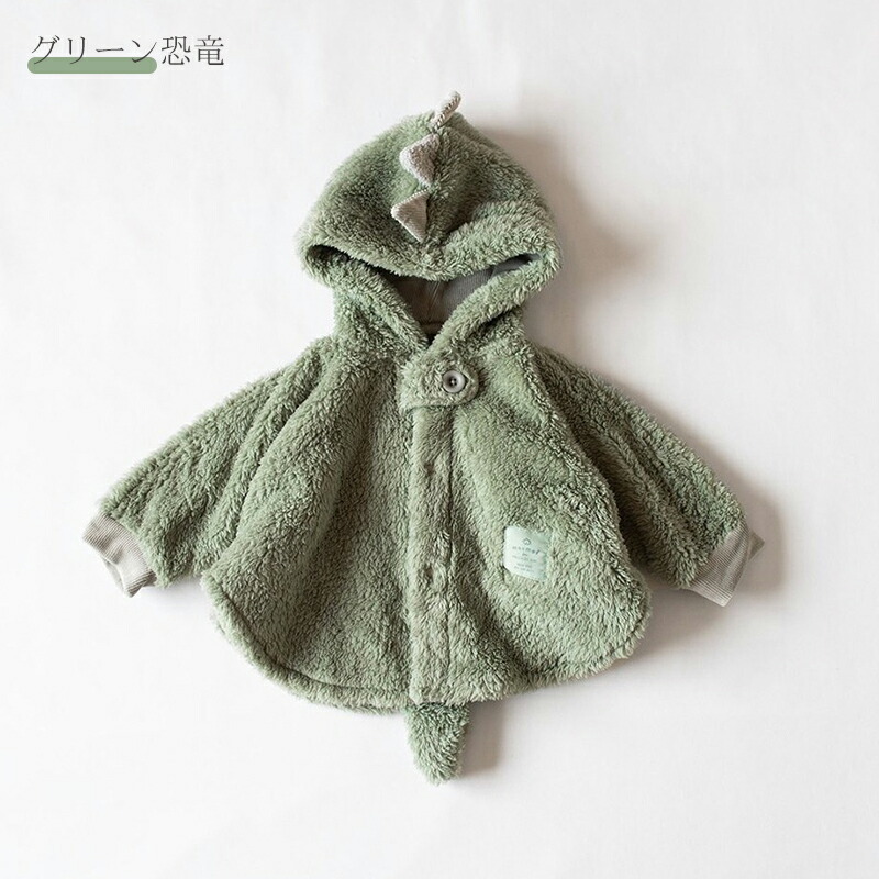 ベビー フード付き 防寒 ボア コート ベビー ベビー服 ファッション ケープ マント 通販 ホワイト兎 ピンク兎 グリーン恐竜 ブラウン熊 グレー猫 66cm 73cm 80cm 90cm 100cm