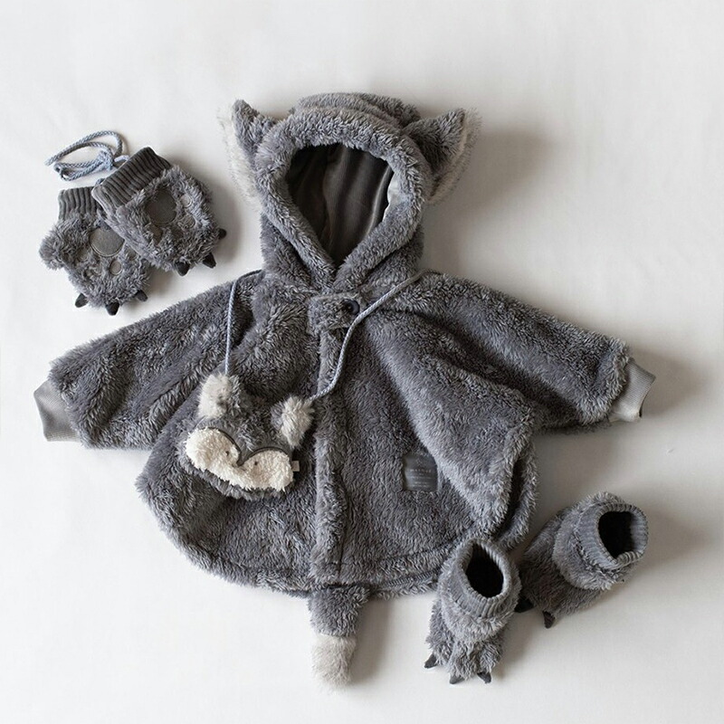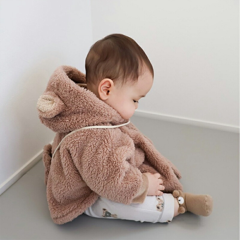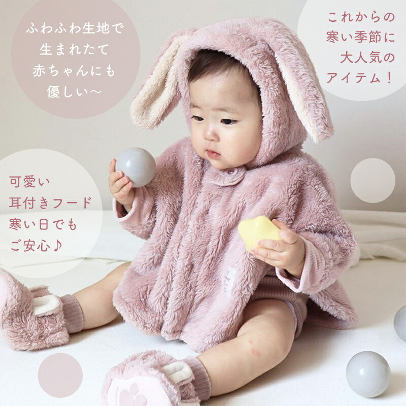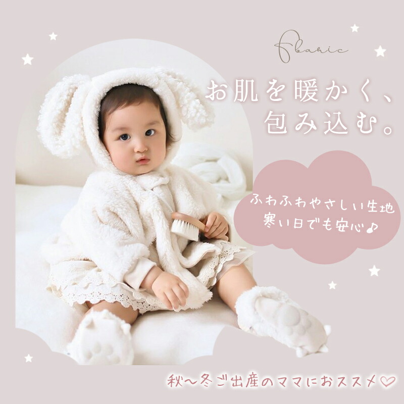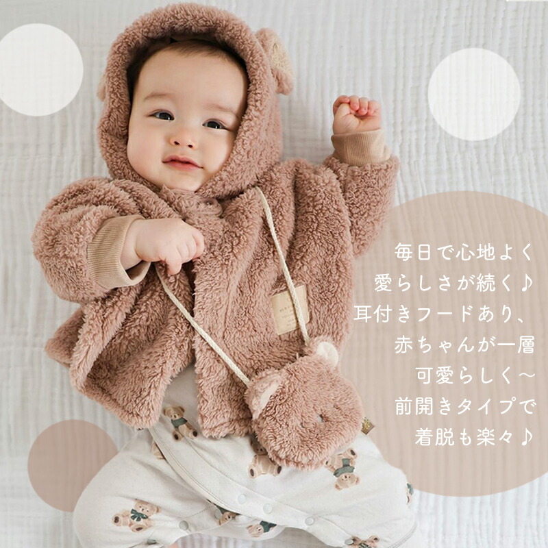 ベビー フード付き 防寒 ボア コート ベビー ベビー服 ファッション ケープ マント 通販 ホワイト兎 ピンク兎 グリーン恐竜 ブラウン熊 グレー猫 66cm 73cm 80cm 90cm 100cm