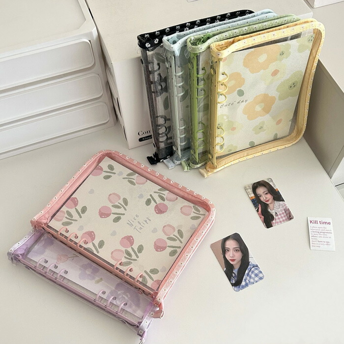 コレクトブック 韓国 花 トレカケース 文房具 事務用品 ファイル バインダー バインダー 人気 ブラック イエロー グリーン ブルー パープル ピンク