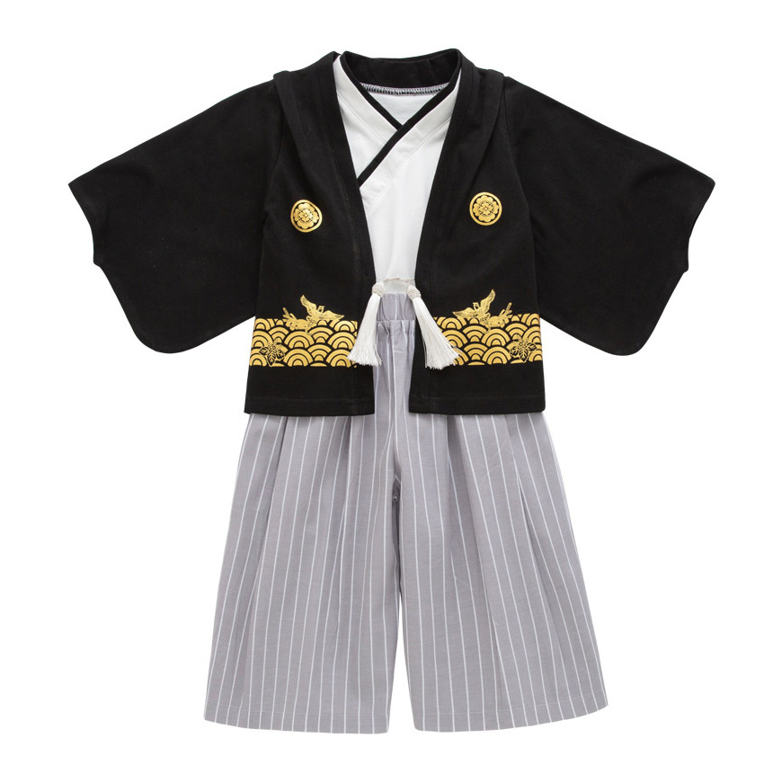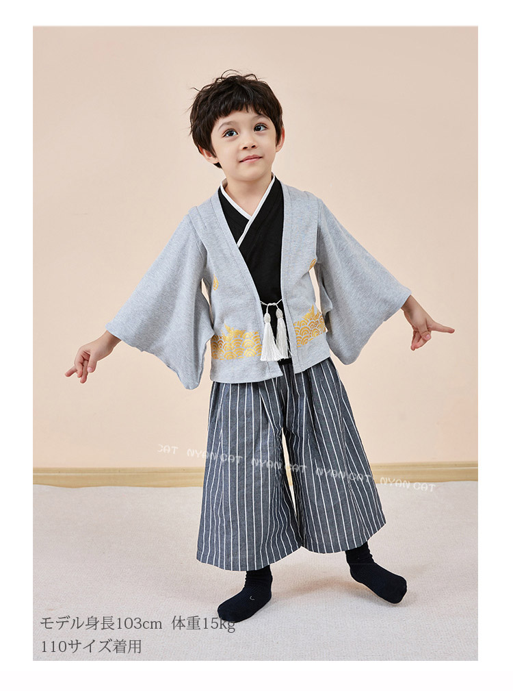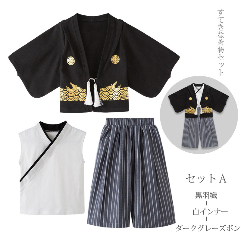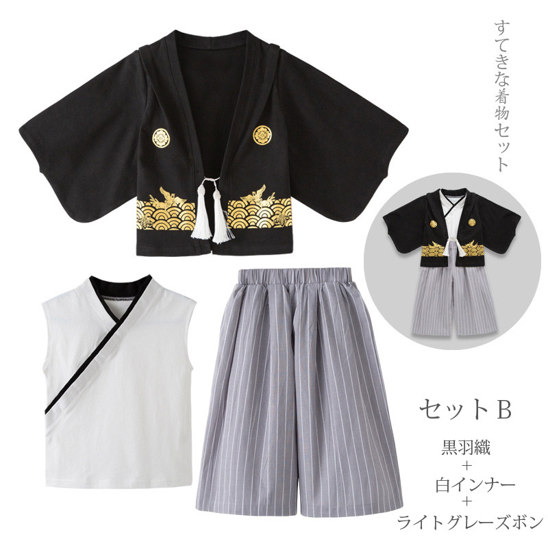 簡易袴セット 男の子 縞 黒 袴 セッ セットA セットB セットC セットD セットE セットF 90cm 100cm 110cm 120m 130cm 140cm