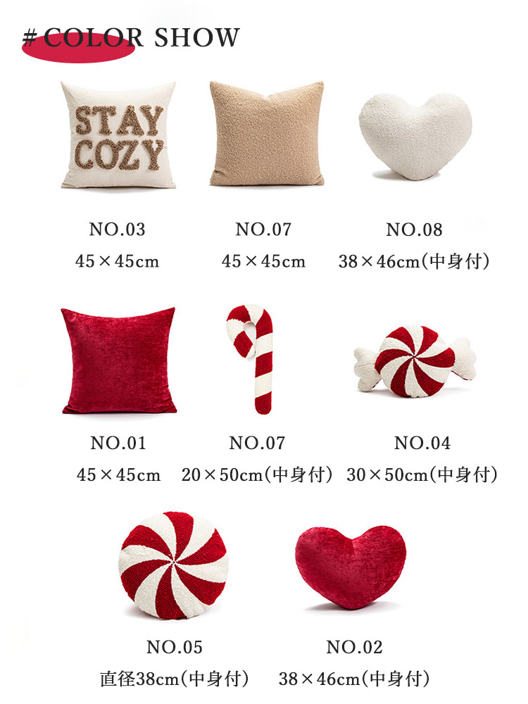 クリスマス クッションカバー 45x4 NO.01 NO.02(中身付き) NO.03 NO.04(中身付き) NO.05(中身付き) NO.06(中身付き) NO.07 NO.08(中身付き)