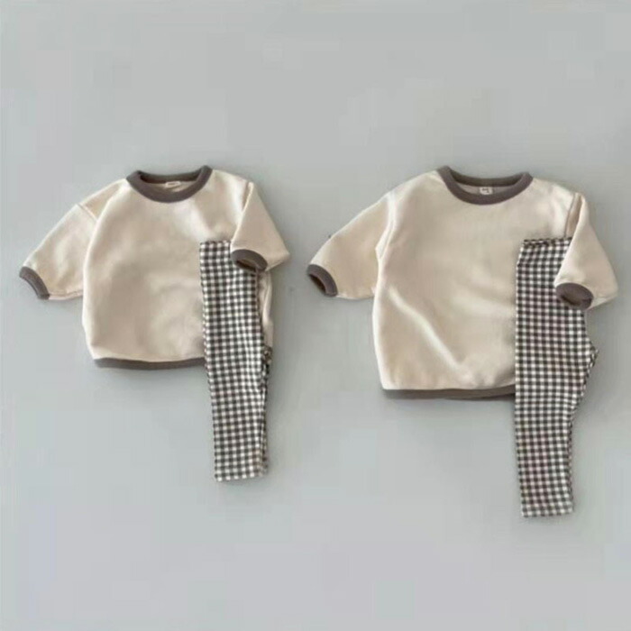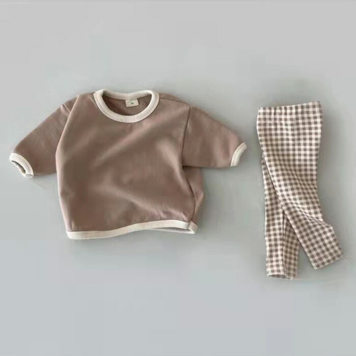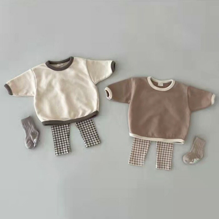 カットソー チェック柄パンツ セットア キッズ ベビー マタニティ 早い者勝ち アイボリー ブラウン 73cm 80cm 90cm 100cm