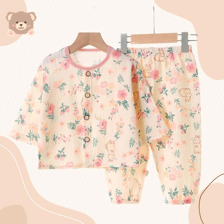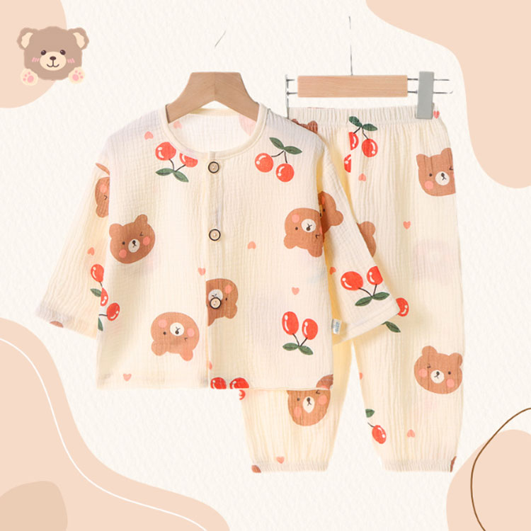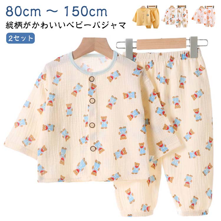 長袖 キッズパジャマ オシャレ 前開き キッズ ベビー マタニティ 新作 2セット(小サクランボ+熊) 2セット(熊+花) 2セット(兎+オレンジ) 2セット(熊+虹) 2セット(熊+大サクランボ) 2セット(黄色+ベージュ) 80cm 90cm 100cm 110cm 120cm 130cm 140cm 150cm