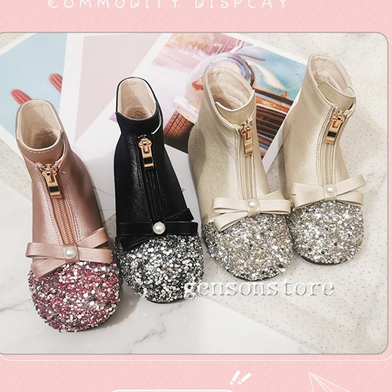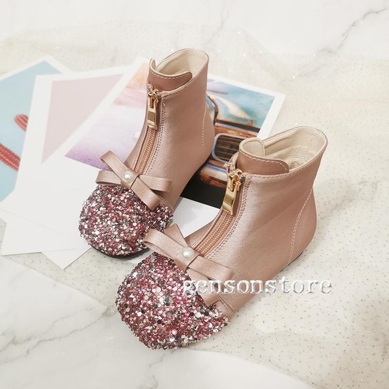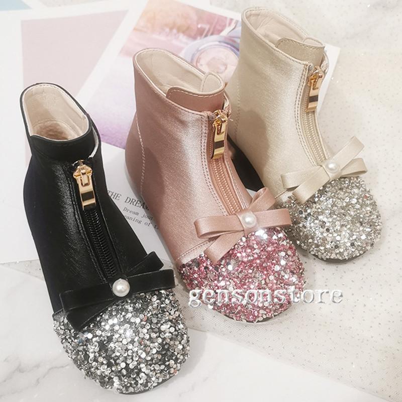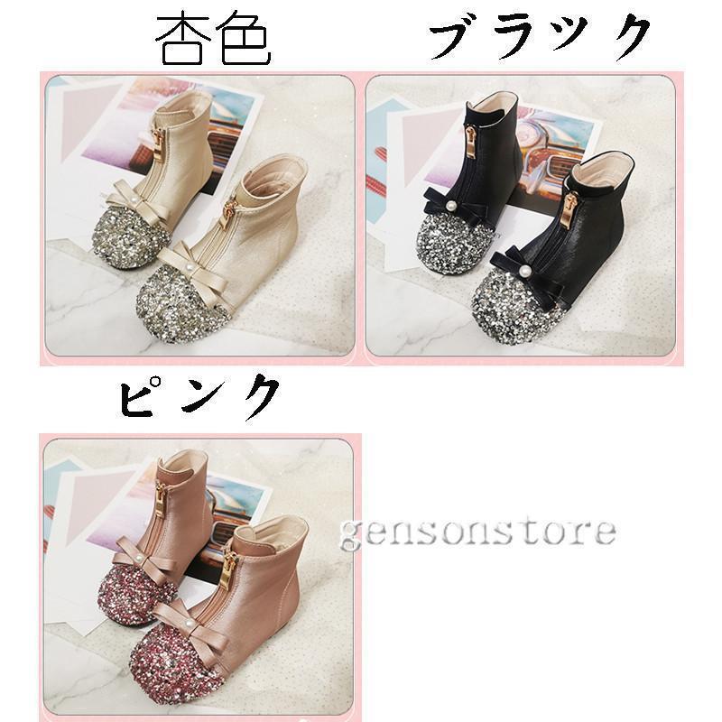 子供ショートブーツきらきらカジュアルフ キッズ ベビー マタニティ 続々入荷中 杏色 ブラック ピンク 25 26 27 28 29 30 31 32 33 34 35