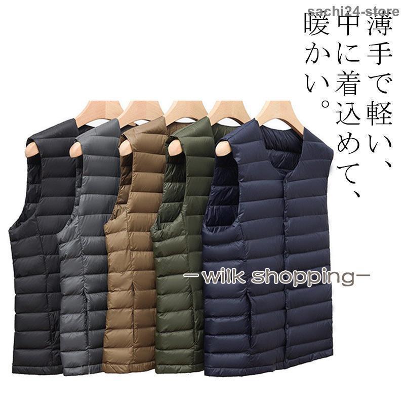 インナーダウンベスト メンズ ダックダ アウトドア ウェア メンズウェア ベスト 新作 カーキ コーヒー グレー ブラック グリーン ネイビー ブルー S M L XL 2XL 3XL