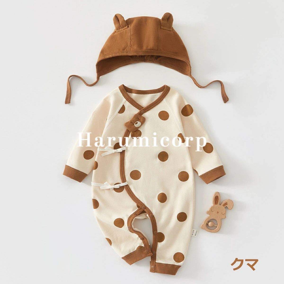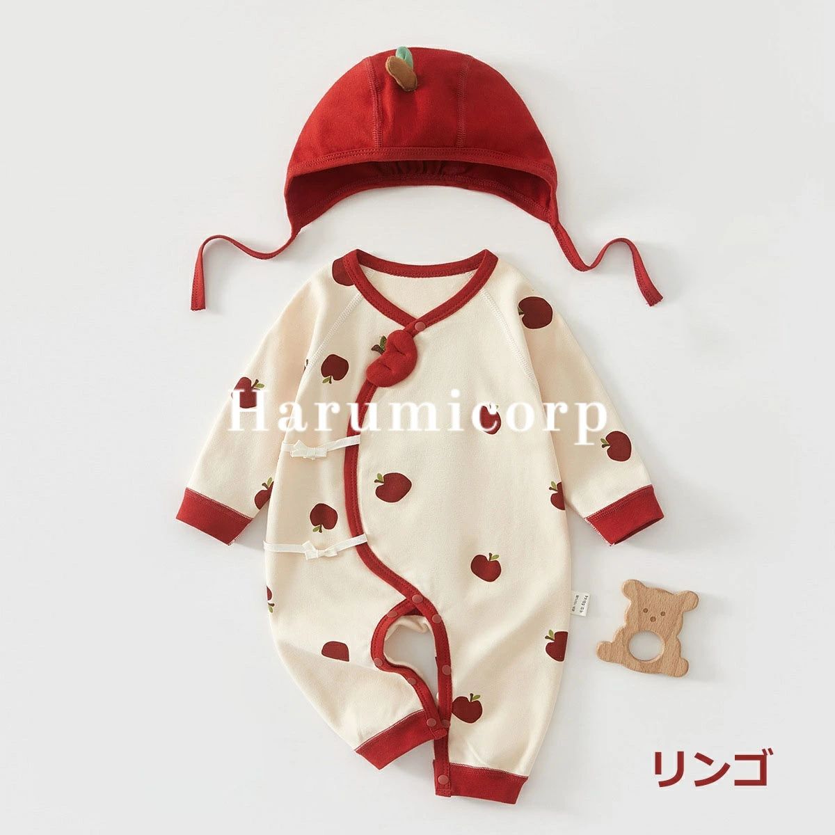 くまちゃん 着ぐるみ 熊耳 ロンパース ベビー ベビー服 ファッション カバーオール ロンパース 通販 クマ リンゴ 52cm 59cm 66cm 73cm 80cm