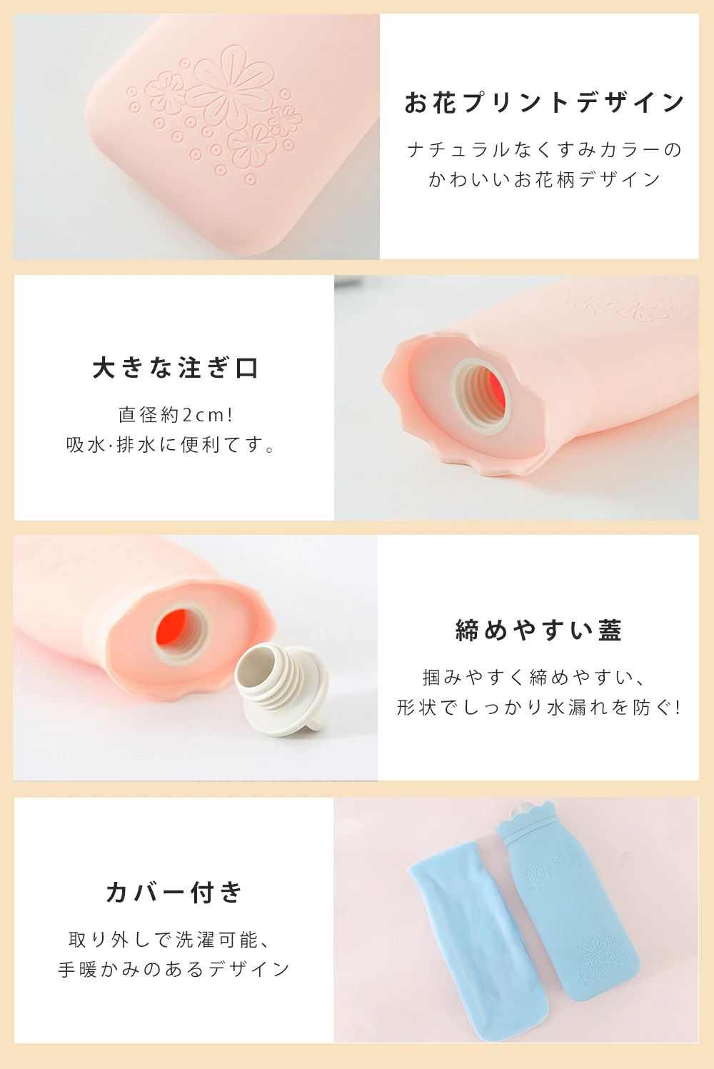 電子レンジ 湯たんぽ カバー付き セッ ピンク ブルー グリーン グレー S M