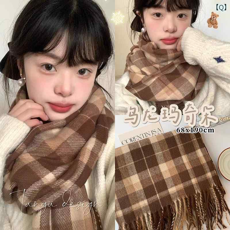 マフラー レディース 秋冬 韓国風 か バッグ 小物 ブランド雑貨 通販 A: ピンク格子 B: 濃ベージュ格子 C: 赤格子 D: コーヒー格子 E: 紺色格子 F: 霧青格子 G: 墨緑格子 H: ミルク白格子 I: 薄ピンク格子 J: オフ白格子 K: グレージュ格子 L: 米黒格子 M: 杏色格子 N: 薄灰色格子 O: 濃灰色格子 P: ローズ格子 Q: 濃茶色格子 R: 空色格子 S: カーキ格子 T: カーキ色格子