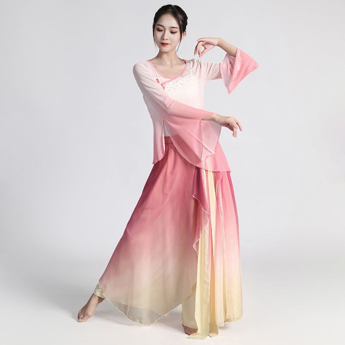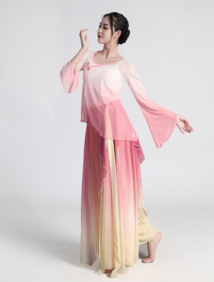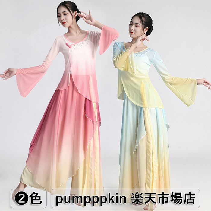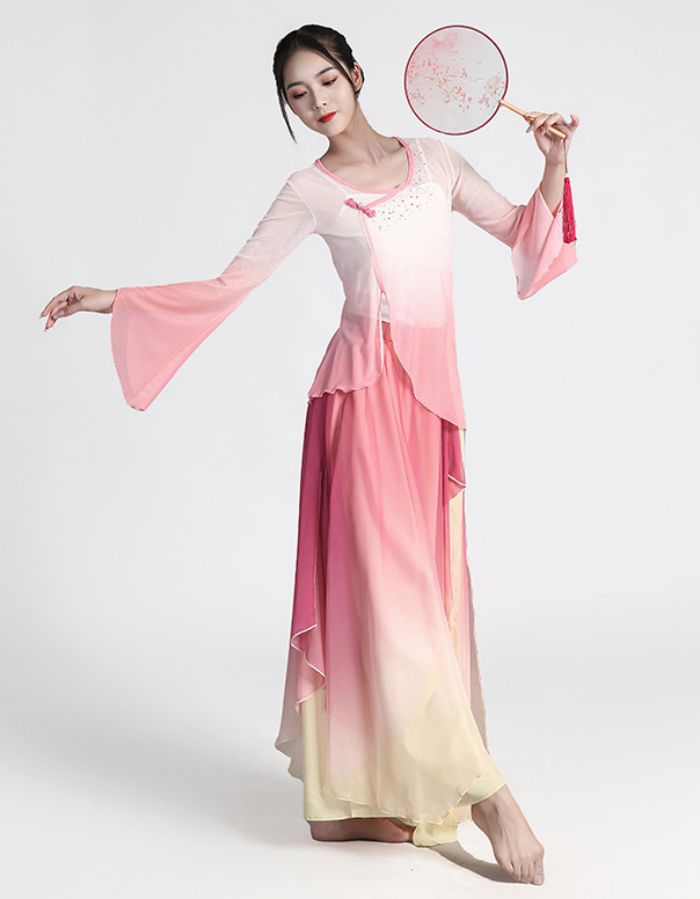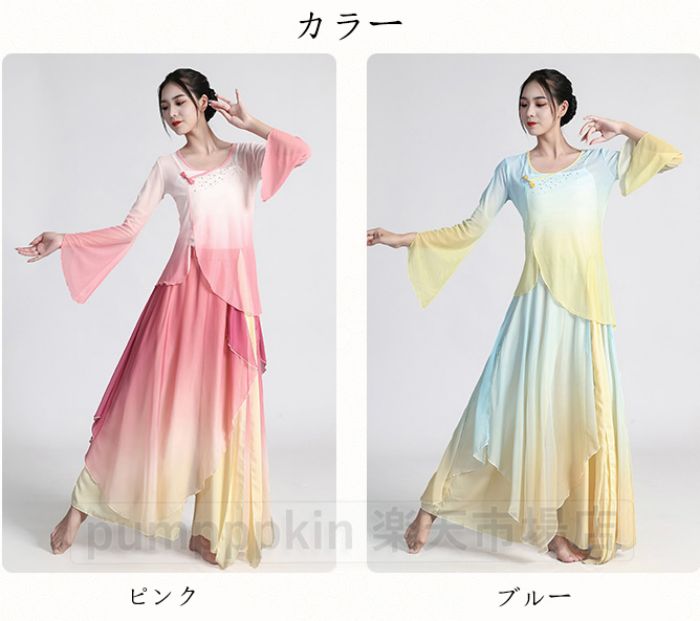 古典舞踊 グラデーション 古典ダンス衣 体操 ダンス 社交ダンス ウェア 特集 ブラウスのみ ブラウス+パンツ+キャミソール ピンク ブルー