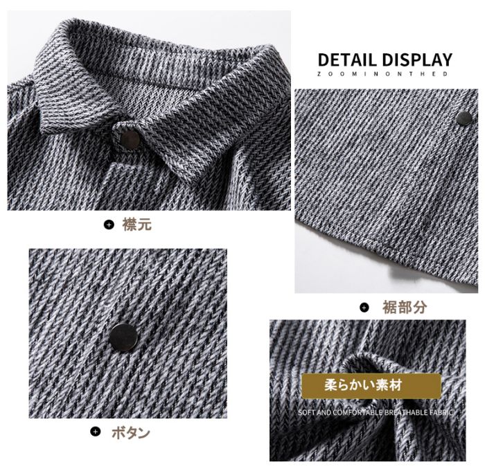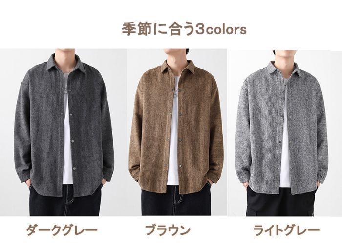 シャツ メンズ 長袖 ジャケット 和式 メンズファッション 新登場! ダークグレー ブラウン ライトグレー M L XL 2XL 3XL