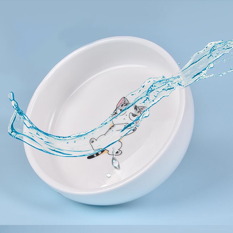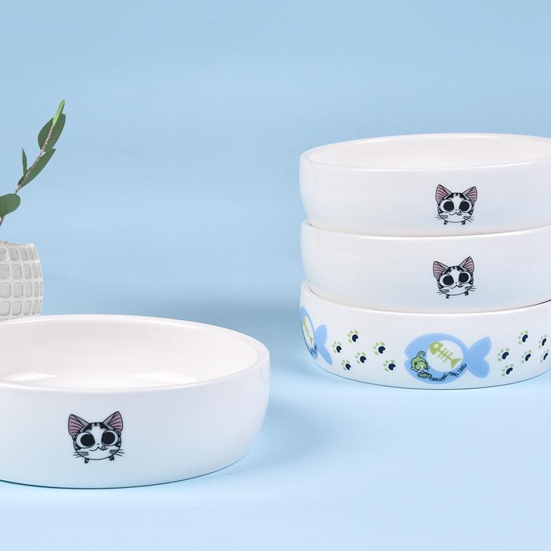 ペット用食器 陶器製 浅広口 猫用フー ブルーフィッシュ 怒り猫 踊る猫