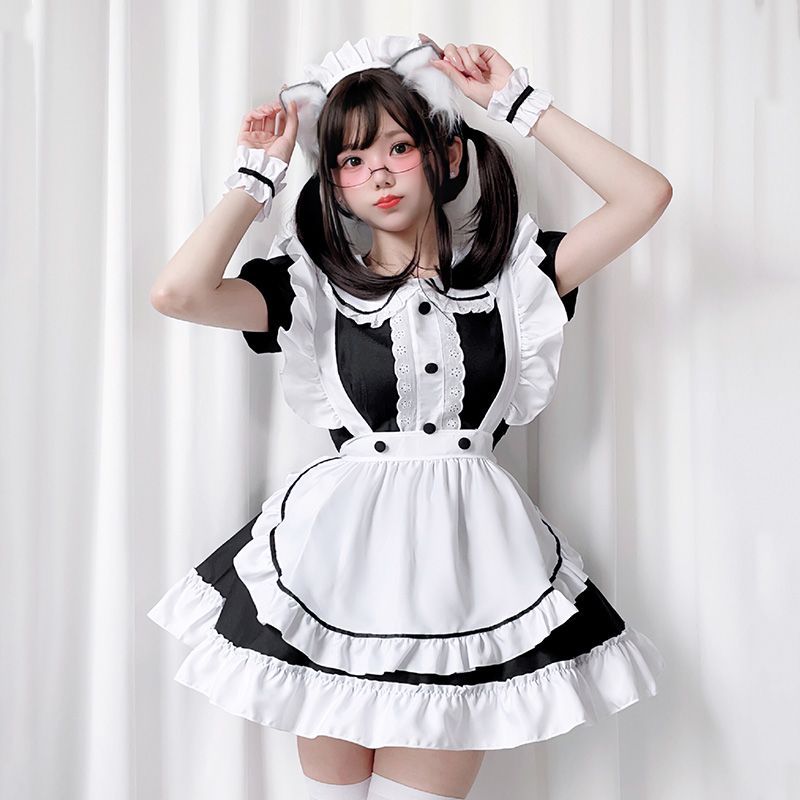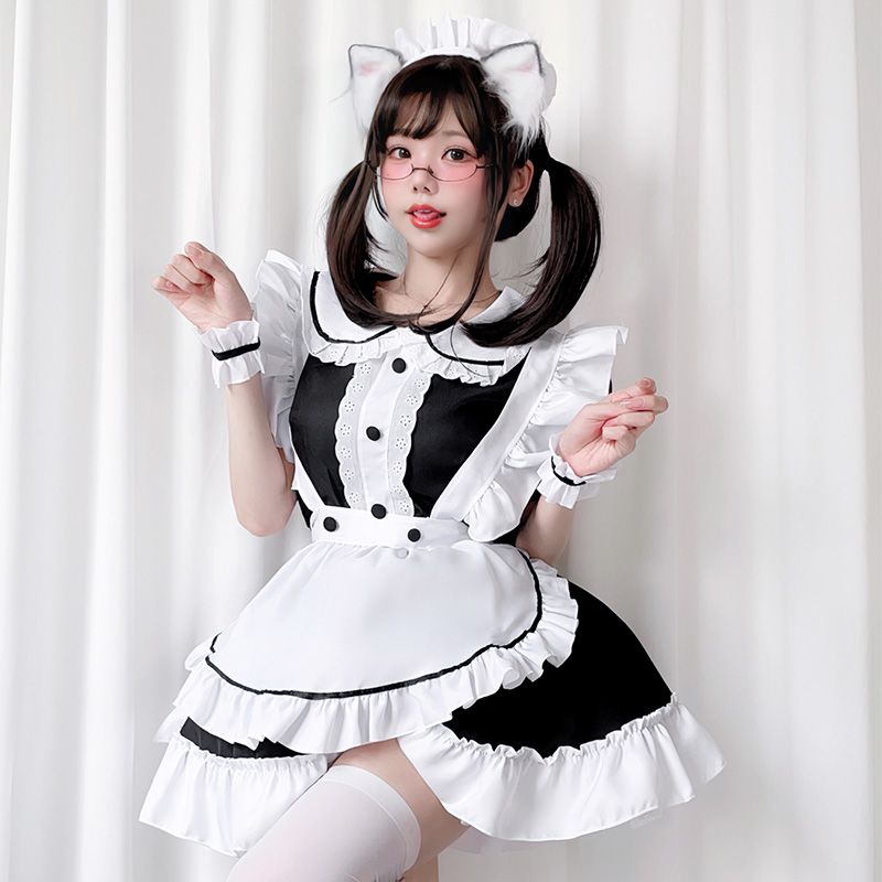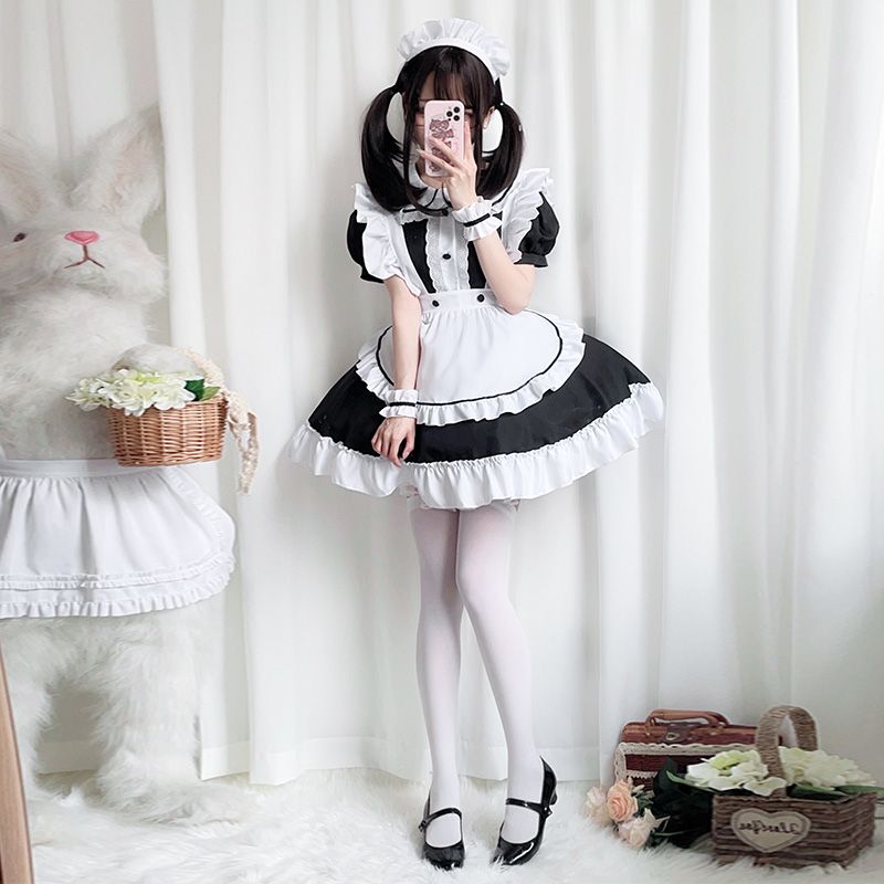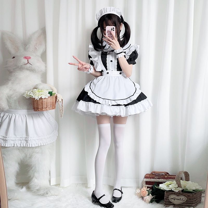 メイド服 コスプレ ハロウィン衣装 レ コスプレ 変装 仮装 コスチューム一式 続々登場 上下5点セット 猫耳6点セット 靴下6点セット
