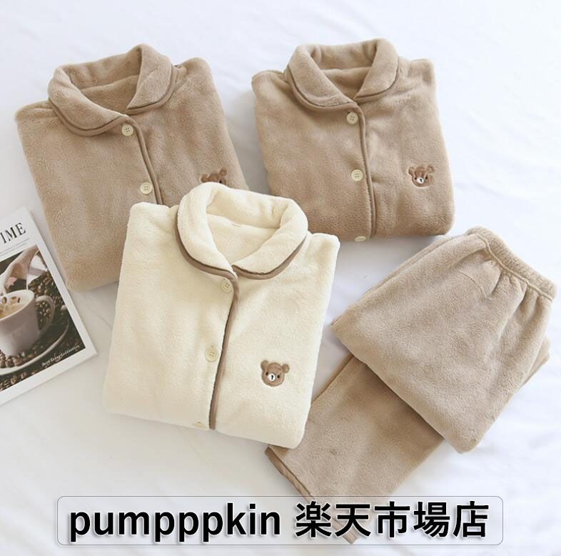 秋冬 パジャマ フランネル 無地 メン インナー 下着 ナイトウエア 通販 ライトコーヒー【女】 ベージュ【女】 ライトコーヒー【男】 M L XL