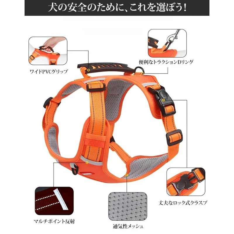 犬用ハーネス 全サイズ対応 引っ張り防 犬用品 首輪 胴輪 リード 胴輪 ハーネス 通販 ブラック イエロー オレンジ レッド XS S M L XL