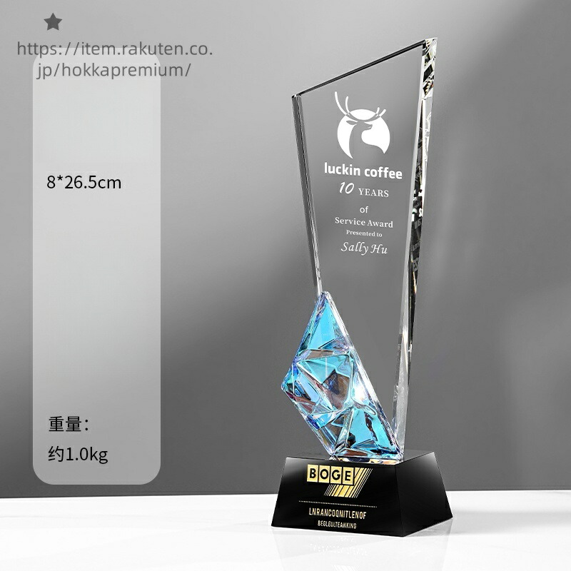 このクリスタルトロフィーは、特別な記念日やイベントを祝うのに最適なアイテムです。美しいクリスタルの輝きが、受賞者の功績を一層引き立てます。刻印無料のサービスを利用して、名前やメッセージを彫刻することで、より個性的な記念品に仕上げることができます。退職記念や周年記念、スポーツ大会の表彰など、さまざまなシーンで活躍します。高級感あふれるデザインが、贈る側の感謝の気持ちをしっかりと伝えます。