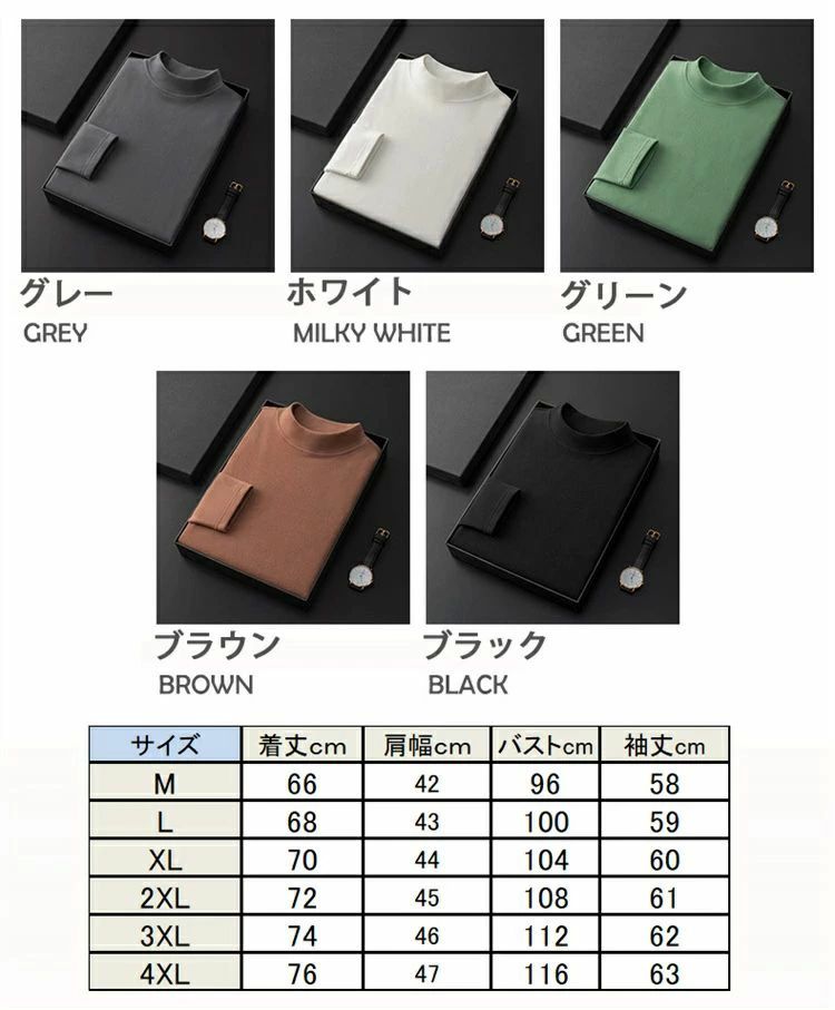 シャツ 保温 発熱 ゴルフウェア ハイ グレー ホワイト グリーン ブラック ブラウン M L XL 2XL 3XL 4XL