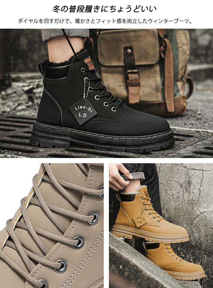 防寒ブーツ 裏ボア スニーカーブーツ メンズ靴 ブーツ ワーク 大人気! ブラック キャメル グレージュ カーキ 39(内寸24.5cm) 40(内寸25cm) 41(内寸25.5cm) 42(内寸26cm) 43(内寸26.5cm) 44(内寸27cm) 45(内寸27.5cm) 46(内寸28cm) 47(内寸28.5cm) 48(内寸29cm)