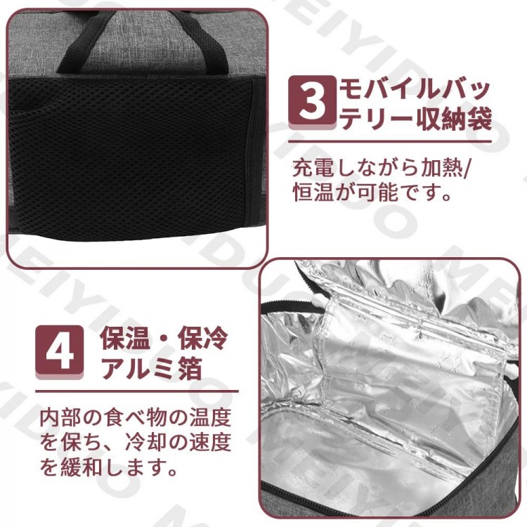 ランチバッグ 加熱 保温バッグ 電気保 弁当箱 水筒 子供用弁当箱 水筒 お弁当箱 お弁当袋 お弁当袋 人気 グレー レッド
