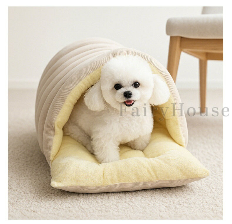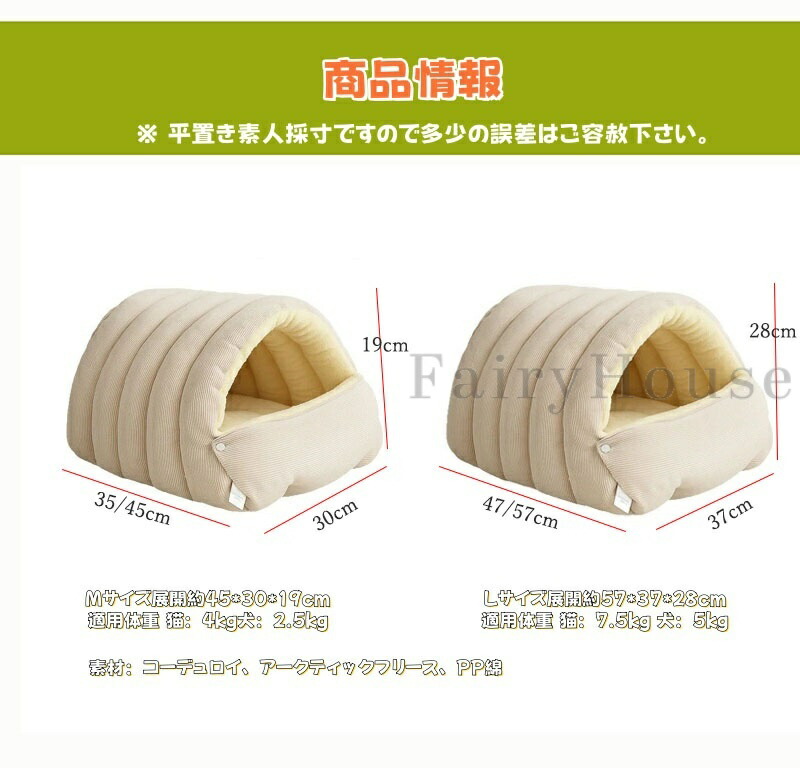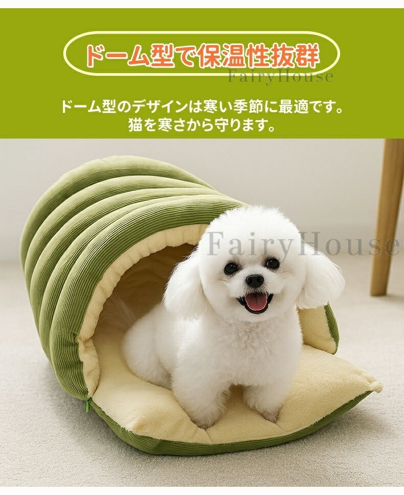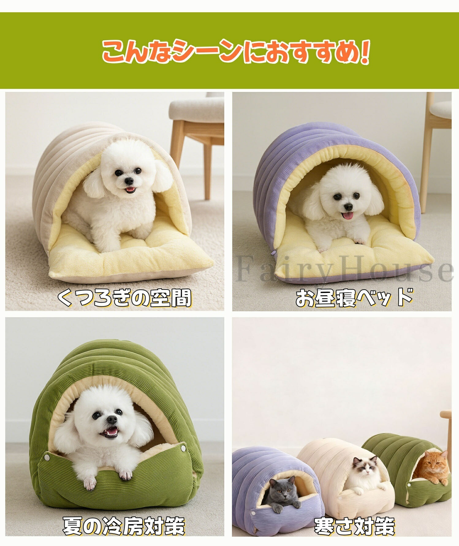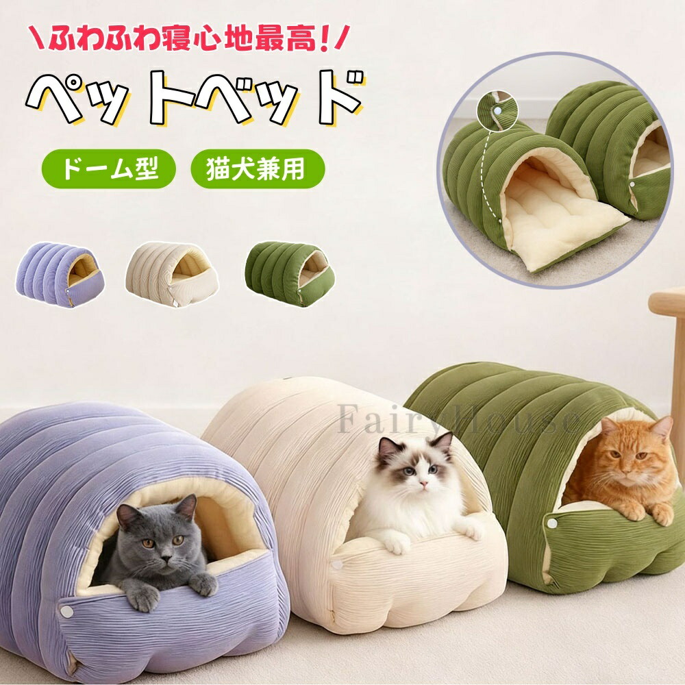 ペットベッド ドーム 寒さ対策 小型犬 猫用品 ベッド マット 寝具 ベッド 人気 ベージュ グリーン パープル M:約45*30*19cm L:約57*37*28cm