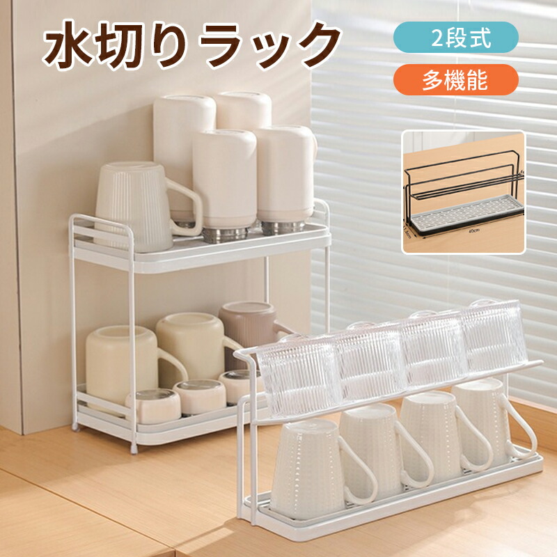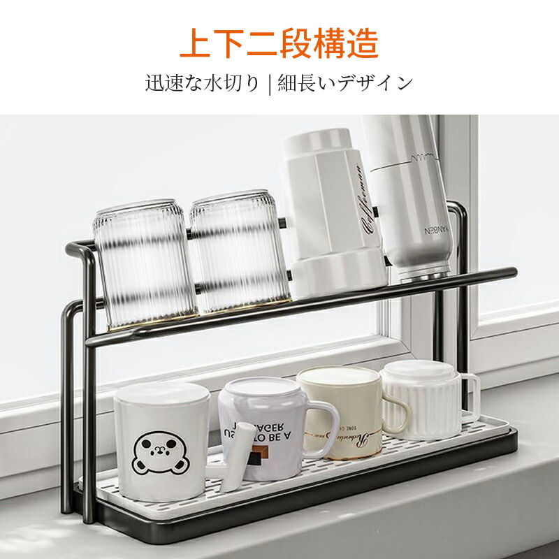 水切りラック コップ 2段式 キッチン キッチン整理用品 水切りラック 超目玉商品 ホワイト ブラック