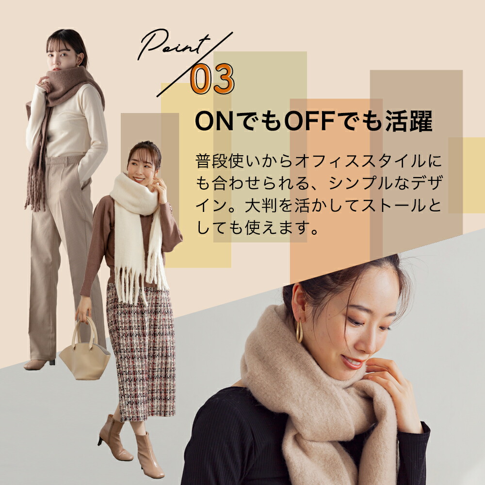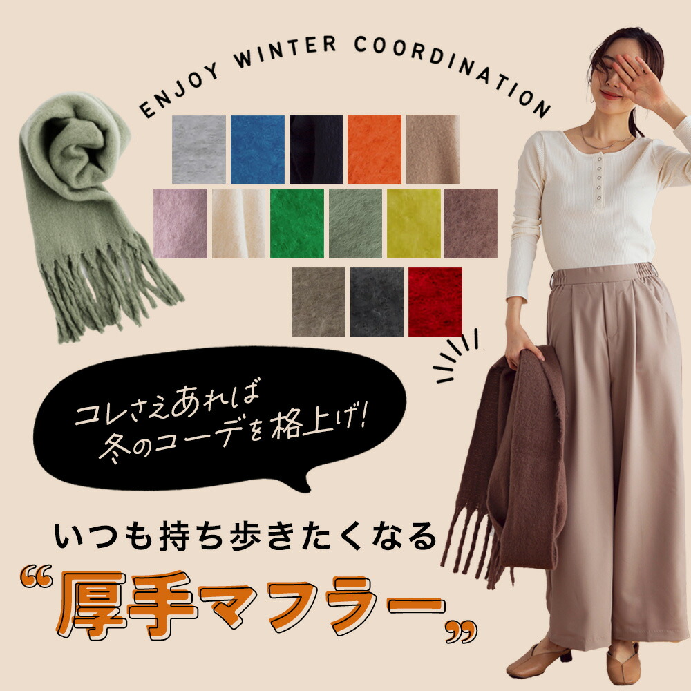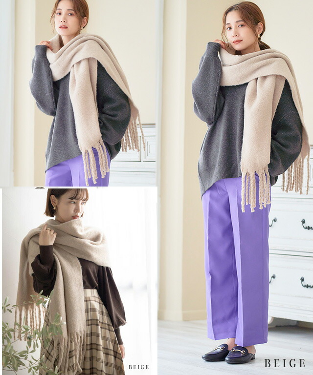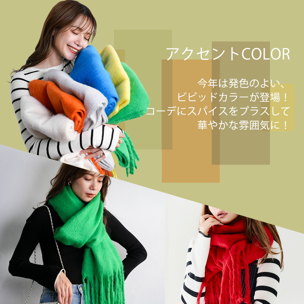 マフラー ストール 肩掛け 暖か 羽織 バッグ 小物 ブランド雑貨 人気 アイボリー ピンクベージュ グリーン ロイヤルブルー ライトグレー ベージュ チャコール ブラック レッド ミント オリーブ グレージュ