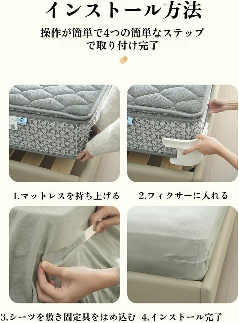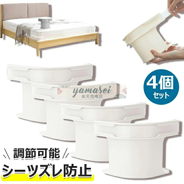 ベッドシーツクリップ ズレ防止 4個セ インテリア 寝具 収納 新登場! ホワイト グレー
