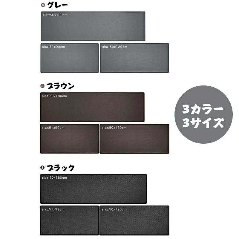 キッチンマット 拭ける 低反発 puレ キッチン用品 食器 調理器具 人気 ブラック グレー ブラウン 約51*99cm 約50*120cm 約50*180cm