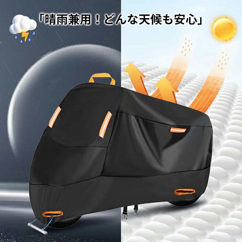 バイクカバー 厚手 原付 420D 耐 ブラック オレンジ M L LL 3L 4L 5L