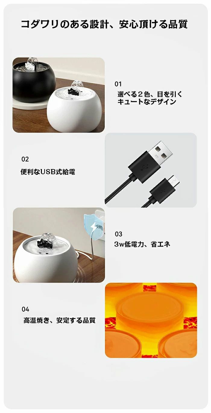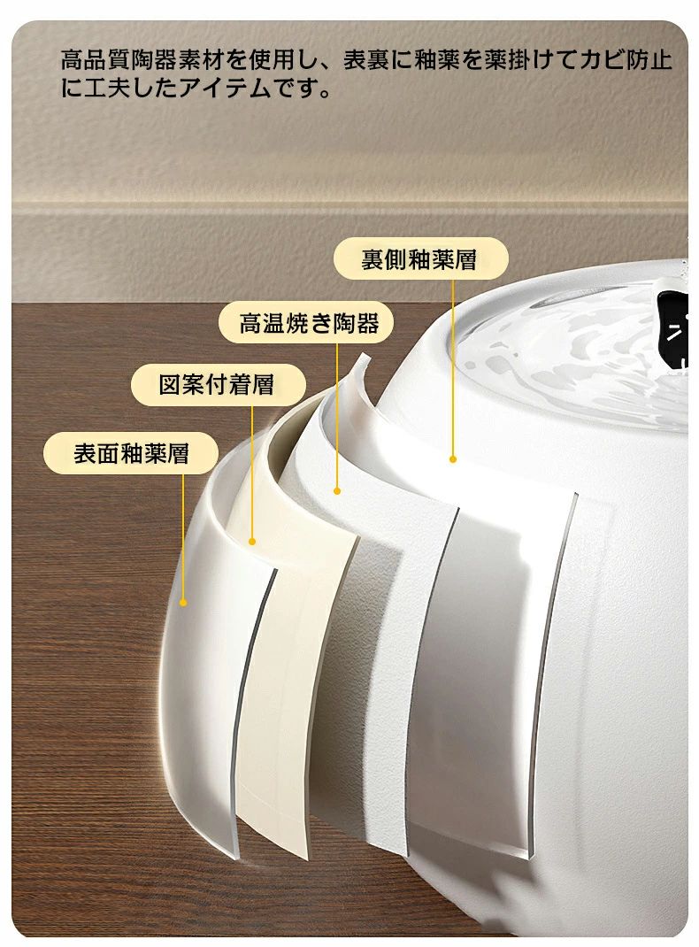 自動給水器 水飲み器 水飲み 陶器皿 猫 給水器 水分補給 水入れ 自動水やり器 自動水やり機 猫自動給水器 浄水 超静音 活性炭フィルター付 USB給電 猫用 犬用 おしゃれ ネコ いぬ 猫犬 ねこ